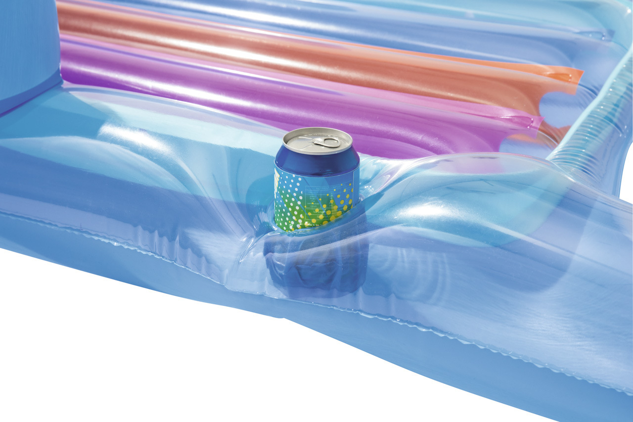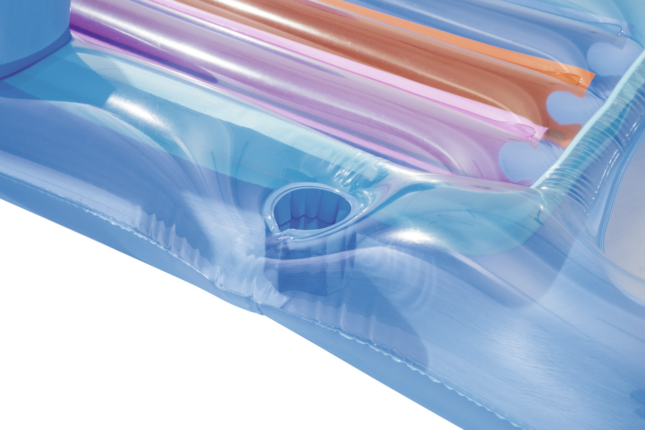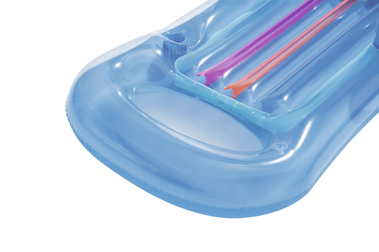 Lehátko módní návrhář je ideální na relax na vlnách s chlazeným drinkem po ruce. Lehátko obsahuje bezpečnostní ventily a je vyrobeno z kalitního vinylu. Pohodlí zajistí opěradlo paží a zad. Integrovaný držák na šálek. Transparentní barevné PVC s barvenými vzduchovými kanálky. Konstrukce se 2 vzduchovými komorami. Obsahuje náhradní záplaty. V nabídce ve dvou barevných provedeních. Max. kapacita 90kg. Určeno pro 1 dospělou osobu. Rozměr: 161 x 84cm.