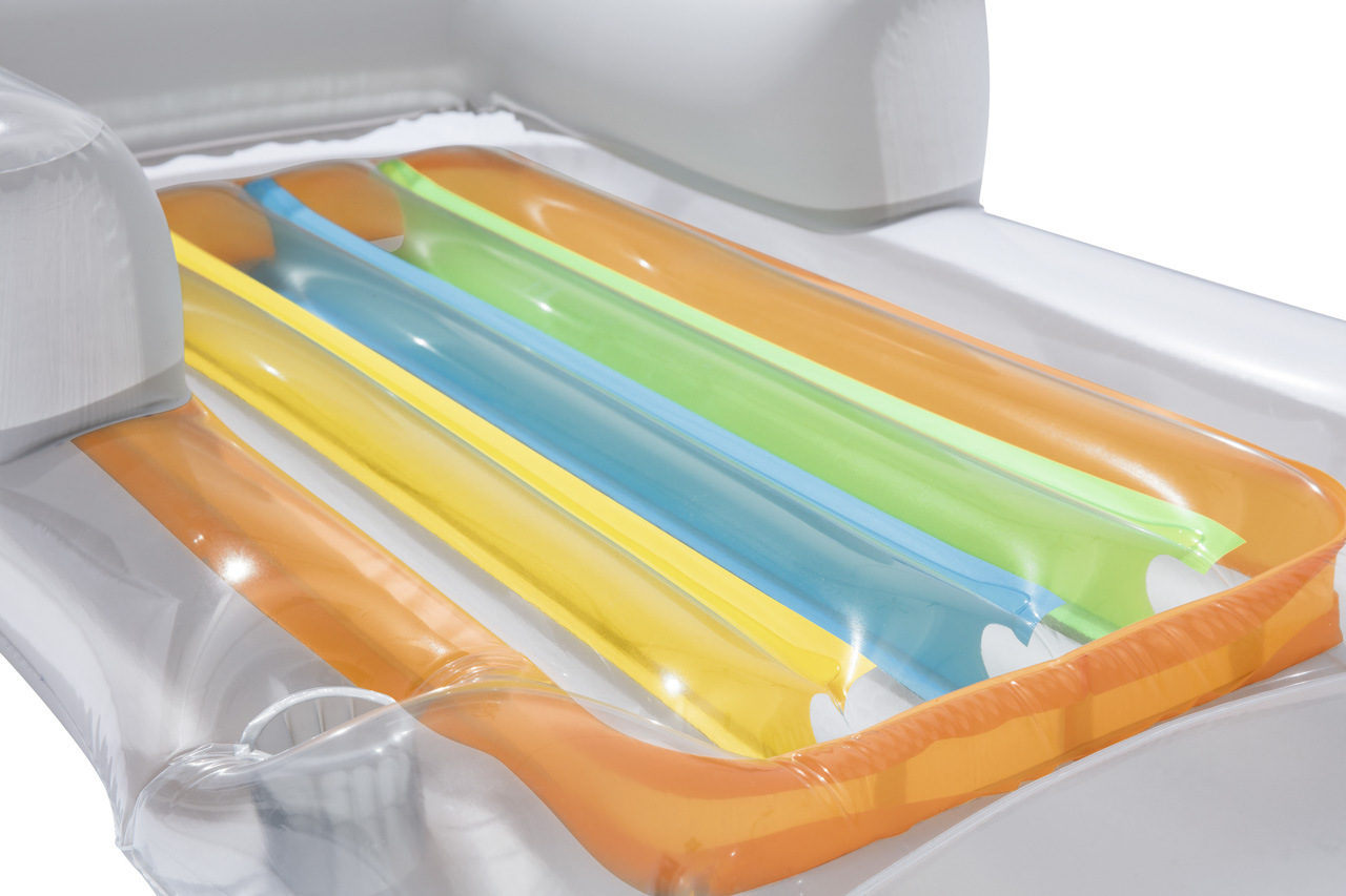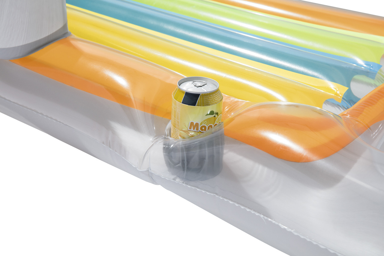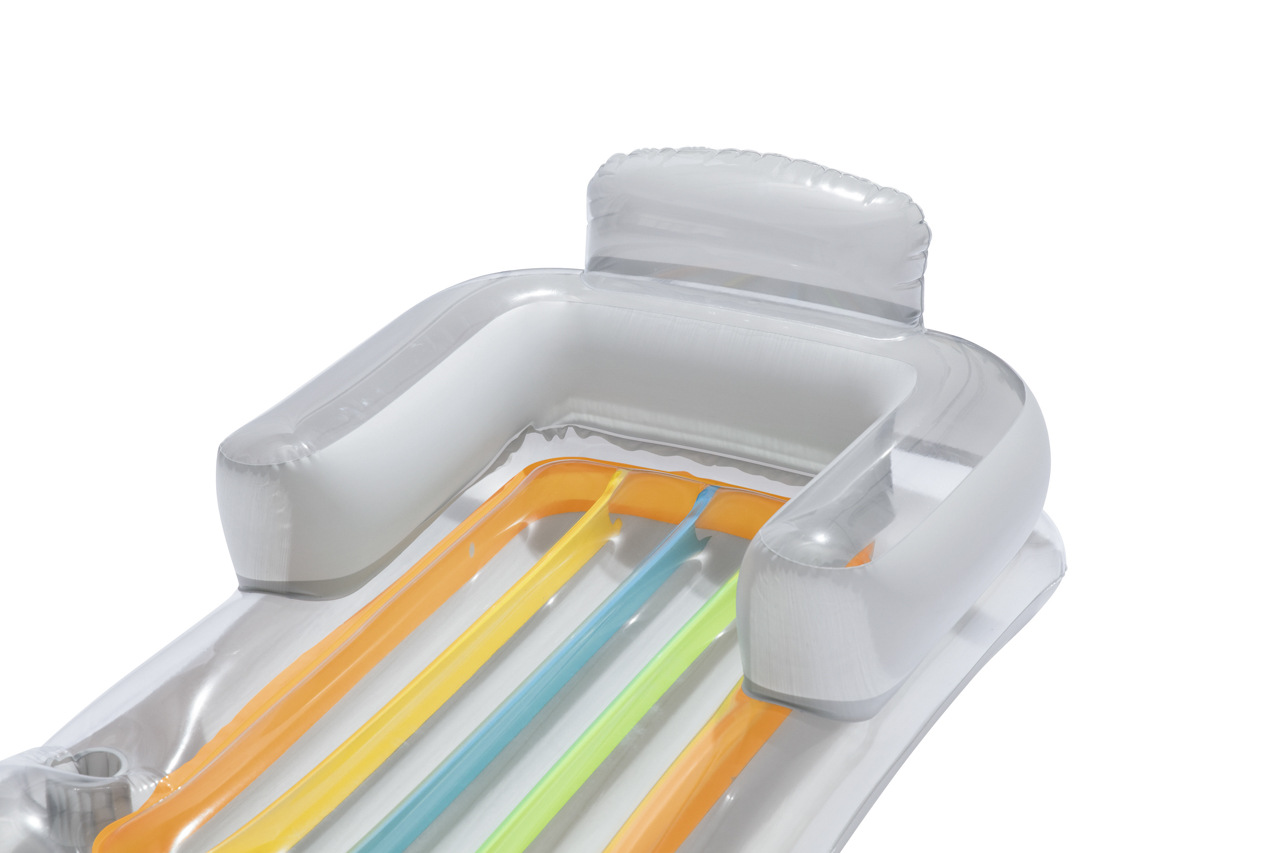 Lehátko módní návrhář je ideální na relax na vlnách s chlazeným drinkem po ruce. Lehátko obsahuje bezpečnostní ventily a je vyrobeno z kalitního vinylu. Pohodlí zajistí opěradlo paží a zad. Integrovaný držák na šálek. Transparentní barevné PVC s barvenými vzduchovými kanálky. Konstrukce se 2 vzduchovými komorami. Obsahuje náhradní záplaty. V nabídce ve dvou barevných provedeních. Max. kapacita 90kg. Určeno pro 1 dospělou osobu. Rozměr: 161 x 84cm.