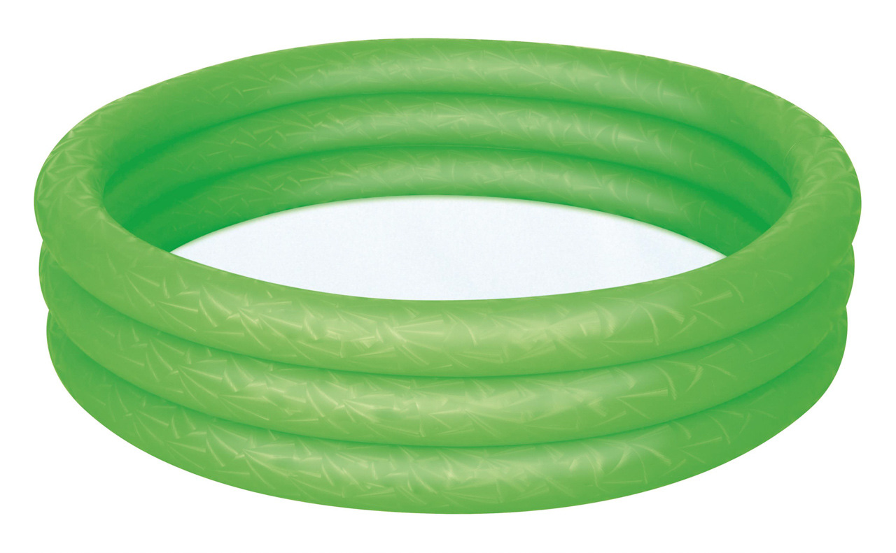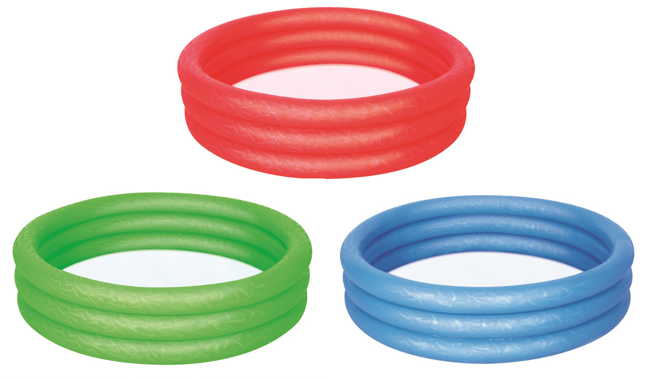 Nafukovací bazének Bestway v červeném, zeleném nebo modrém provedení je ideální pro osvěžení malých dětí. Skládá se ze 3 stejných kruhů, které jsou vhodné také jako opěra dětí. Vyrobeno z bezpečného a kvalitního vinylu. Obsahuje: 1 nafukovací bazének, 1 opravná sada. Assort je náhodný mix barev a výběr nelze ovlivnit. Max. kapacita: 140 l. Rozměr: 122 x 25 cm. Rozměr balení: 28 x 27,5 x 3,1 cm. Věk: 2+. Užívání pouze pod dohledem dospělé osoby.