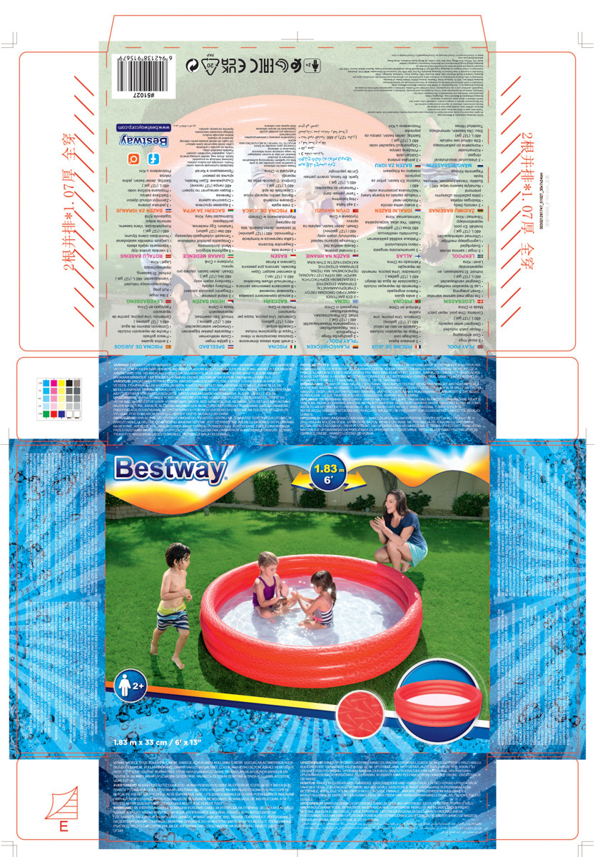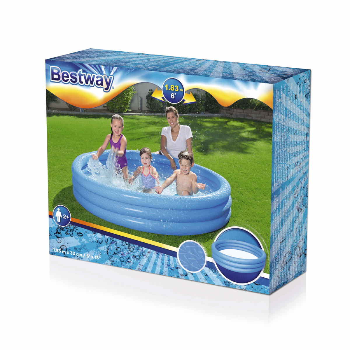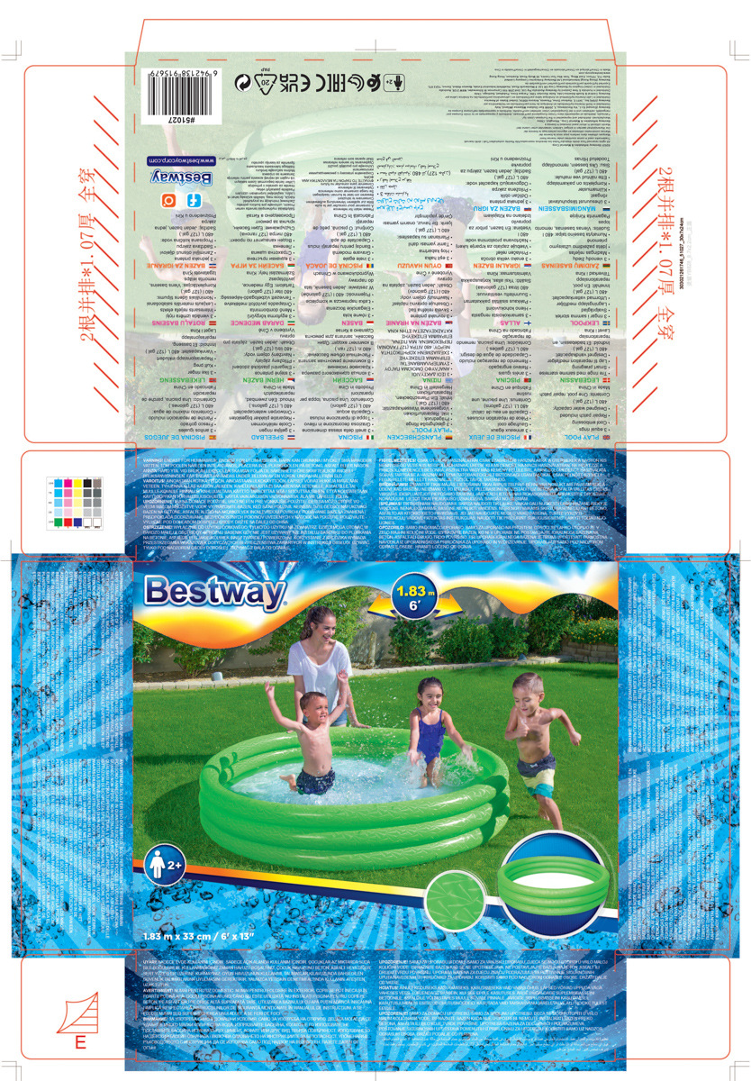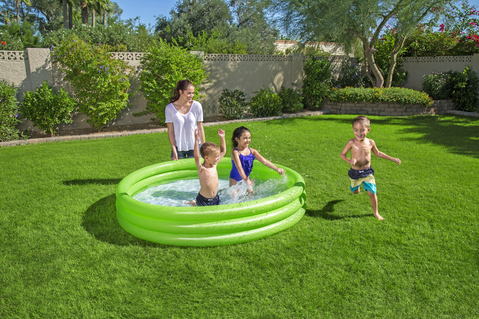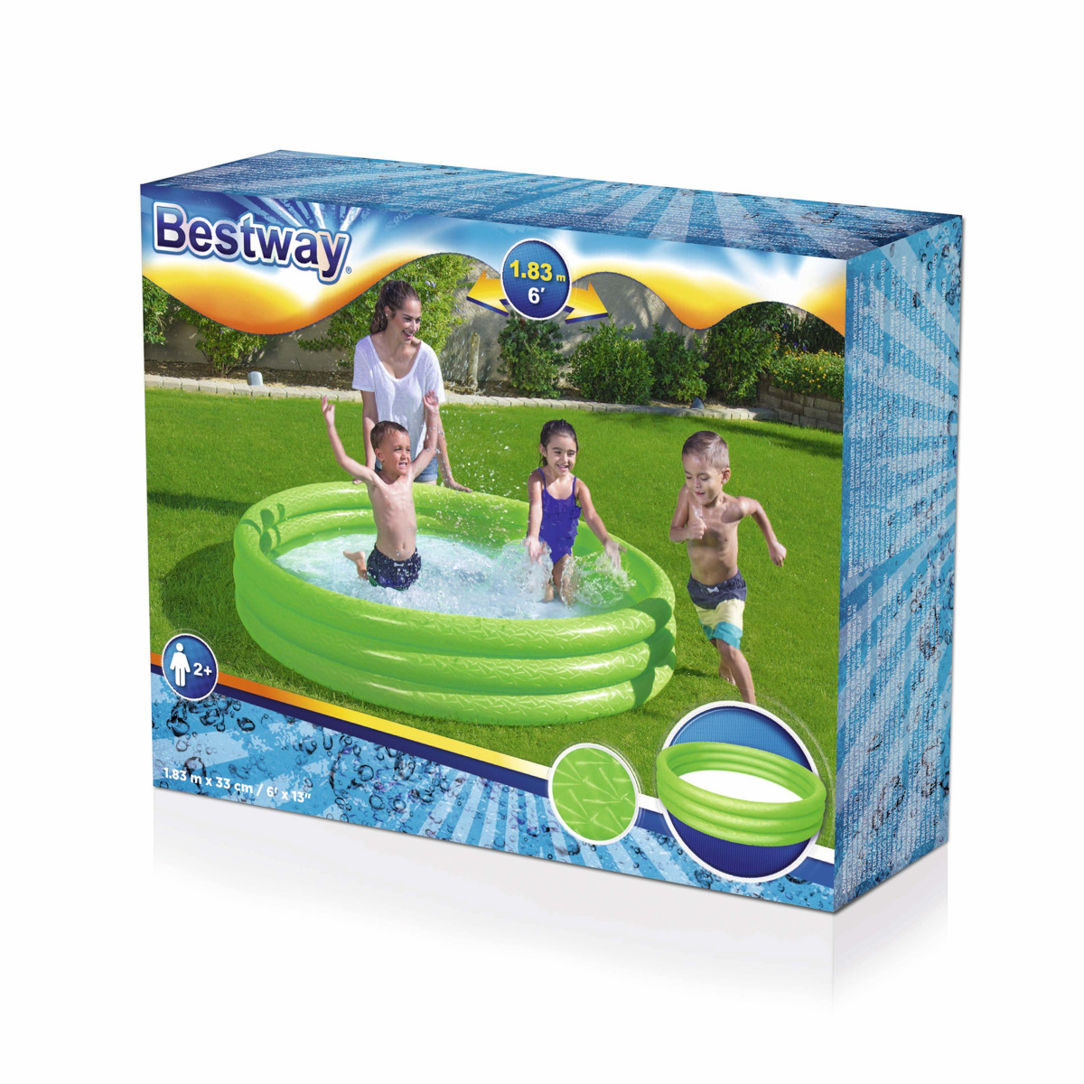 Nafukovací bazének Bestway v červeném, zeleném nebo modrém provedení je ideální pro osvěžení malých dětí. Skládá se ze 3 stejných kruhů, které jsou vhodné také jako opěra dětí. Vyrobeno z bezpečného a kvalitního vinylu. Obsahuje: 1 nafukovací bazének, 1 opravná sada. Assort je náhodný mix barev a výběr nelze ovlivnit. Max. kapacita: 140 l. Rozměr: 122 x 25 cm. Rozměr balení: 28 x 27,5 x 3,1 cm. Věk: 2+. Užívání pouze pod dohledem dospělé osoby.