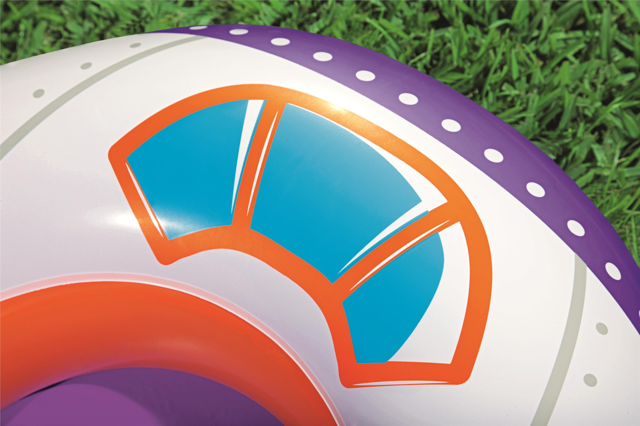 Dětský nafukovací člun s motivem vesmírné lodi. . Zapojte fantazii a vydejte se vstříc dobrodružství. Vestavěný reproduktor s vermírnými zvuky. Vyrobeno z velmi odolného materiálu. Bezpečnostní ventily pro snadné nafouknutí a vyfouknutí. Rozměr plováku: 104 x 99cm. Věk: 3-6 let. Užívání vždy pod dohledem dospělé osoby.
