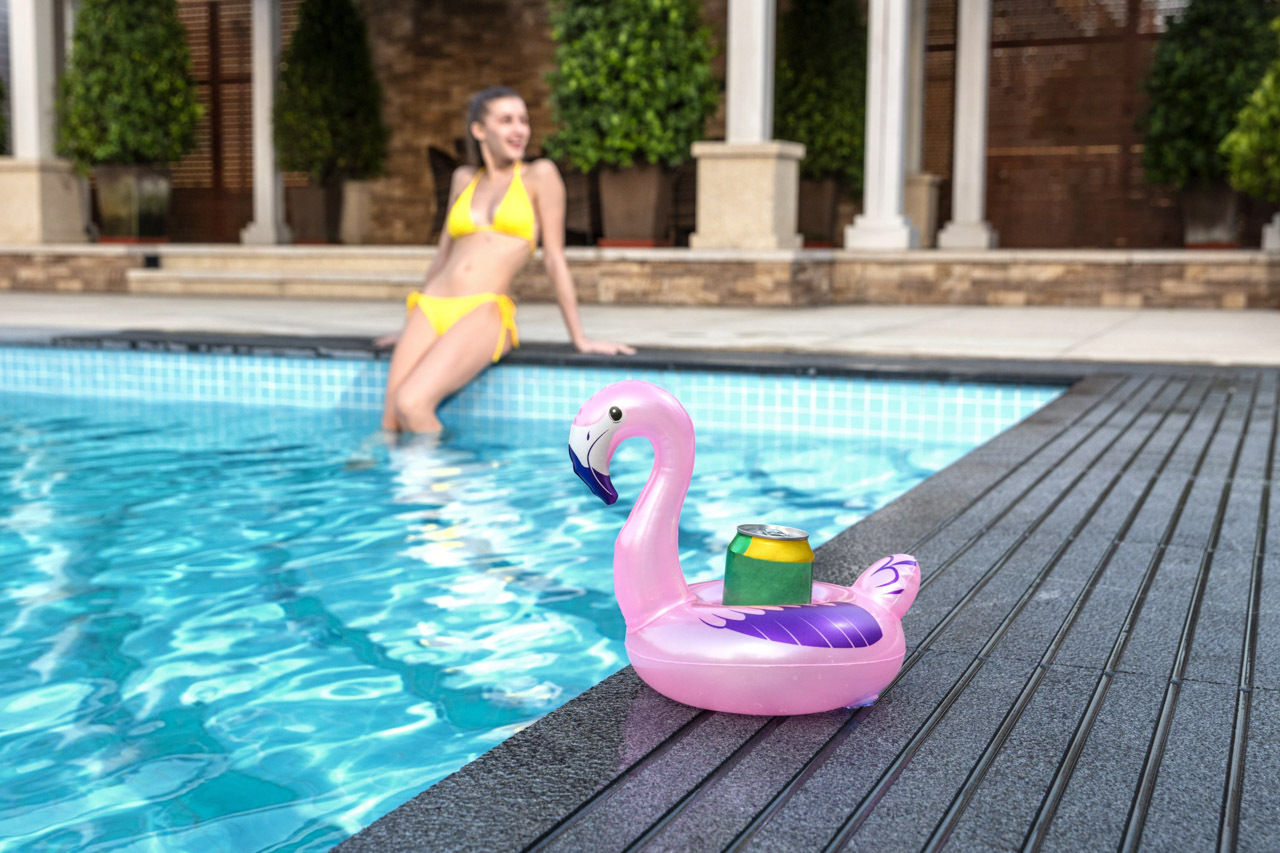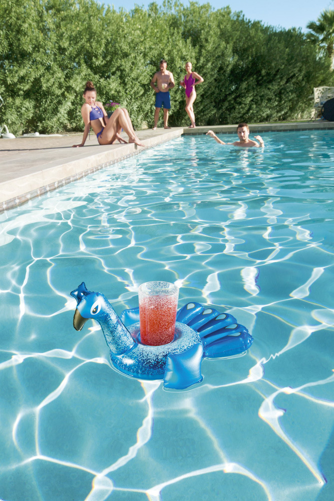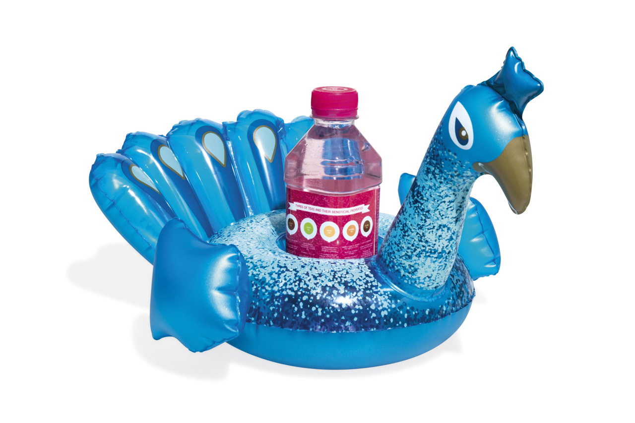 Nafukovací plovací držák na pití ve dvou atraktivních variantách - plameňák a páv. Ideální do bazénu či vířivky. Rozměr plaměňák 26,5 x 24 cm, páv 34,5 x 31 cm