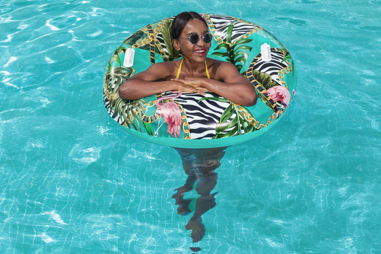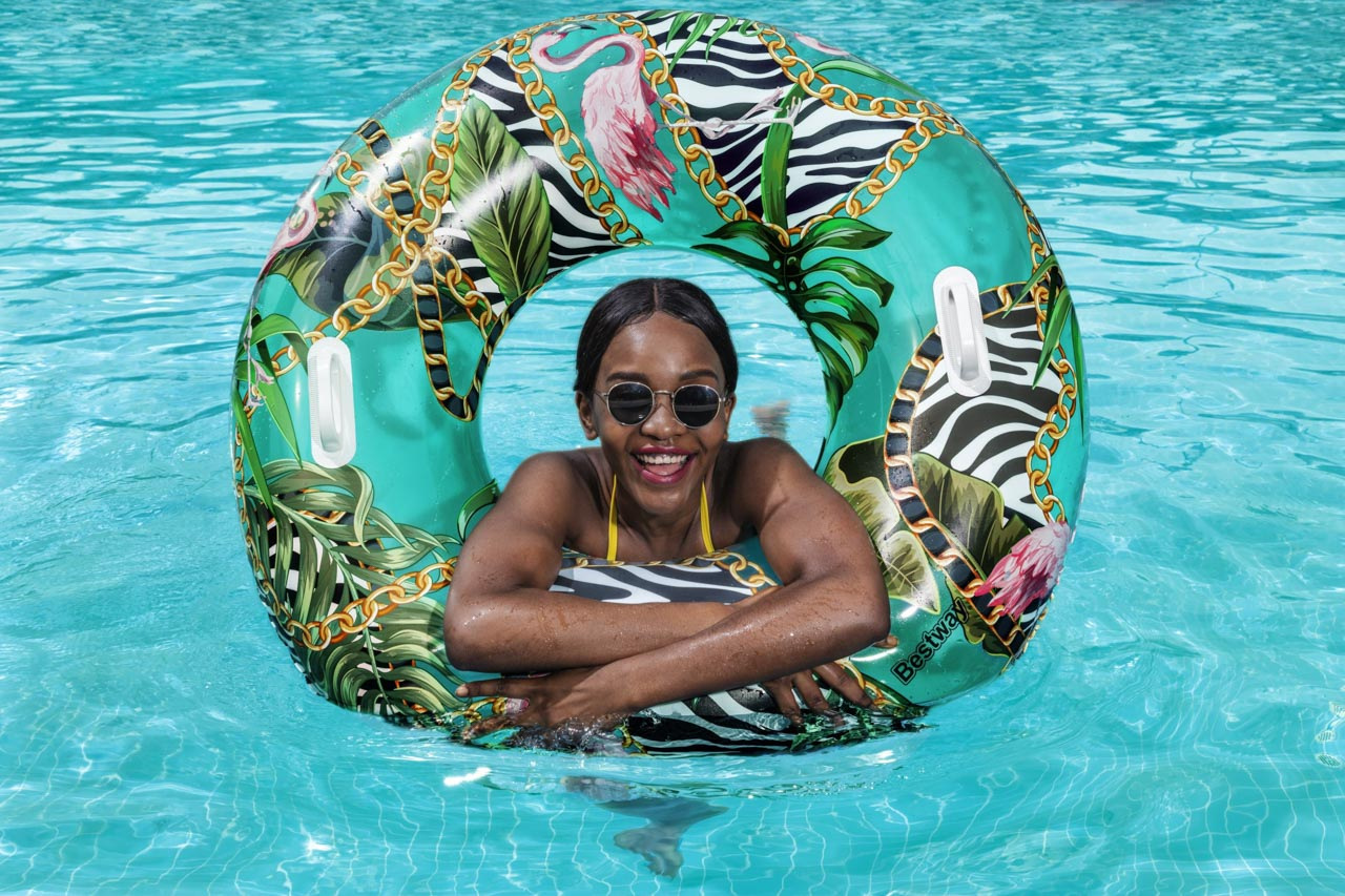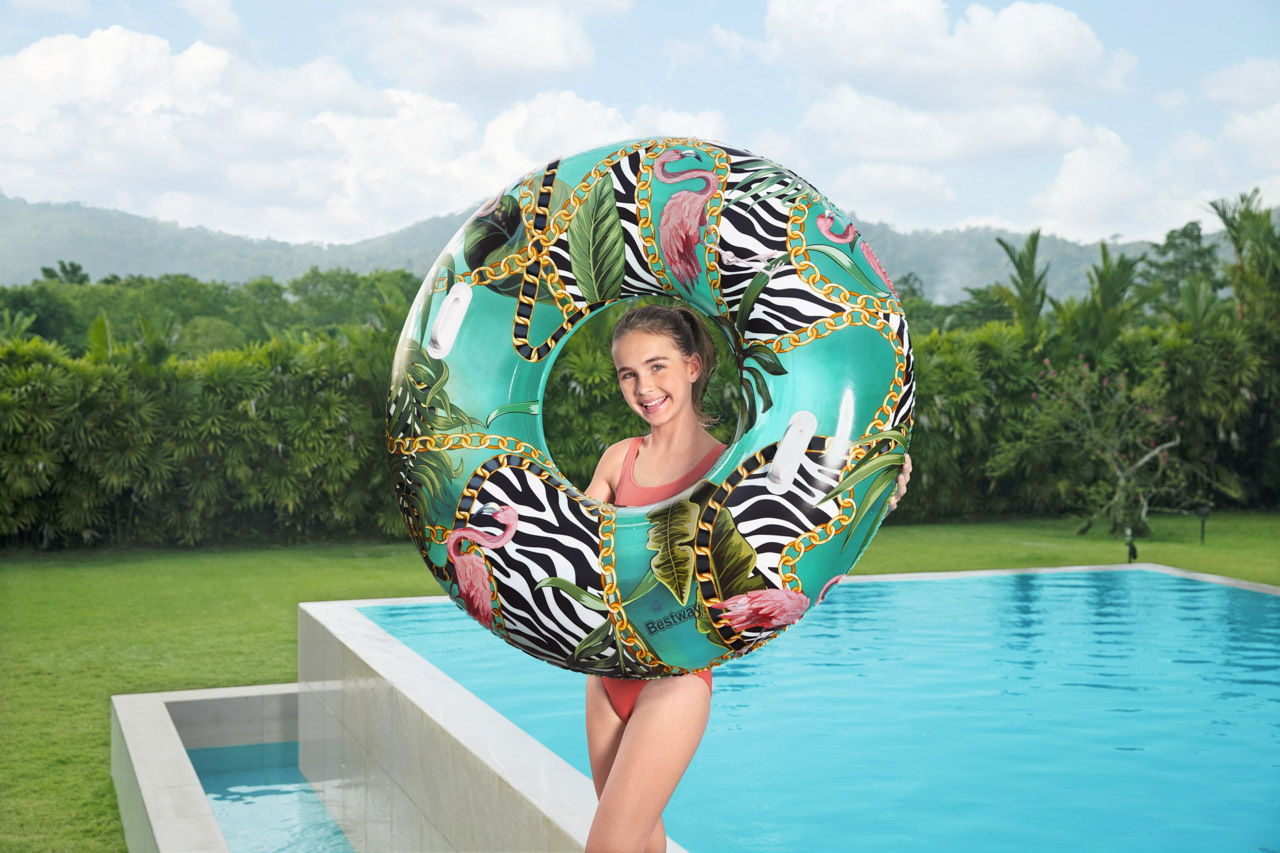 Bestway nafukovací kruh Malina s trendy moderním potiskem a sladkou malinovou vůní. Roztomilý potisk je ideální na letní party u bazénu. Průměr kruhu: 1,19 m. Kruh se snadno nafukuje, vyfukuje a skládá. Doporučený věk: 12+. Obsahuje: 1 nafukovací kruh, 1 opravnou záplatu. Užívání vždy pod dohledem dospělé osoby.