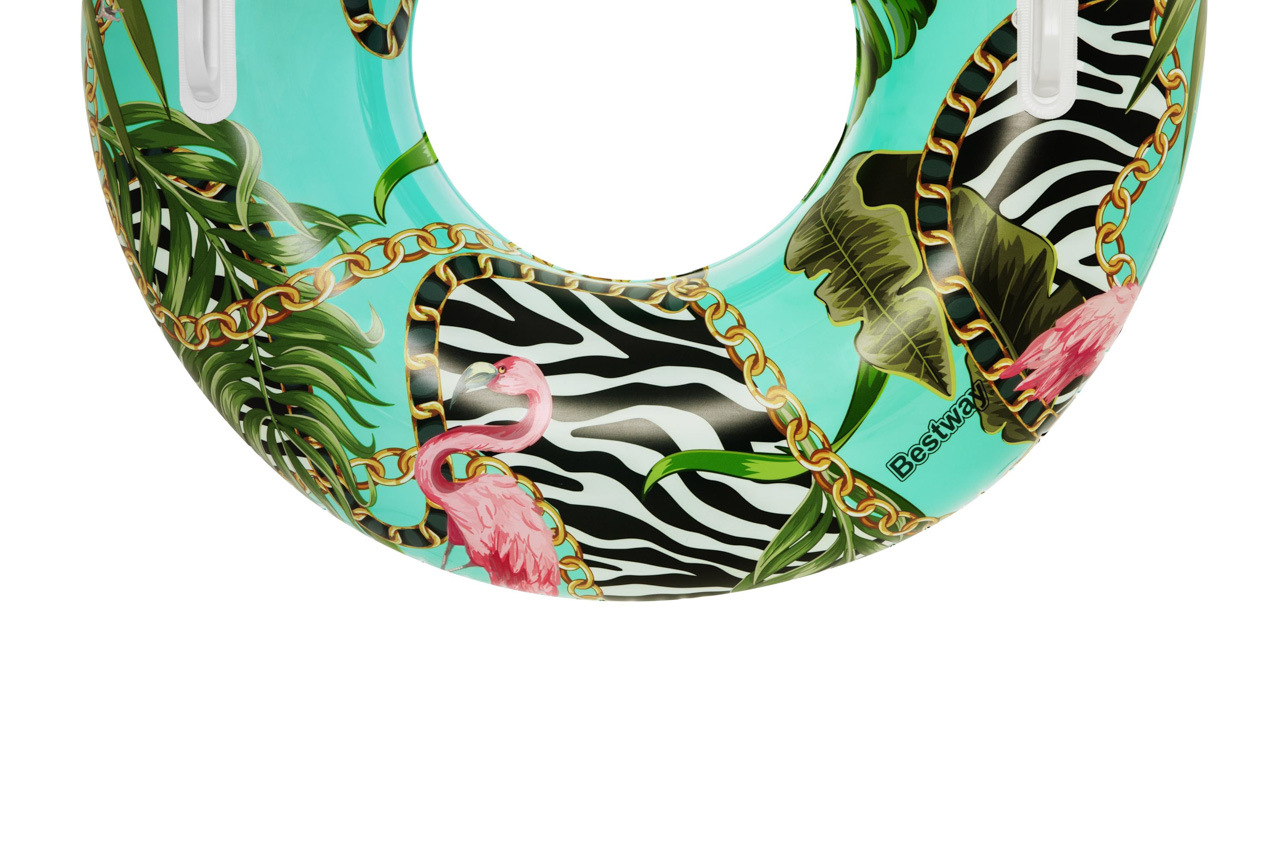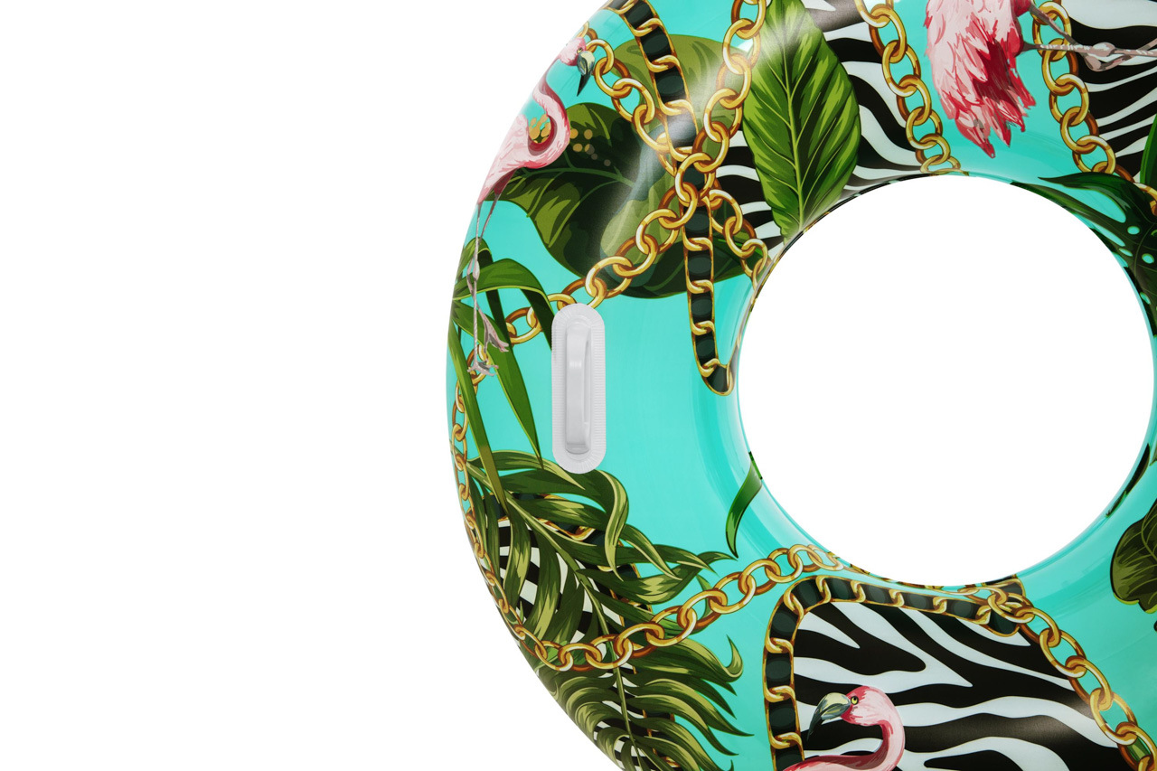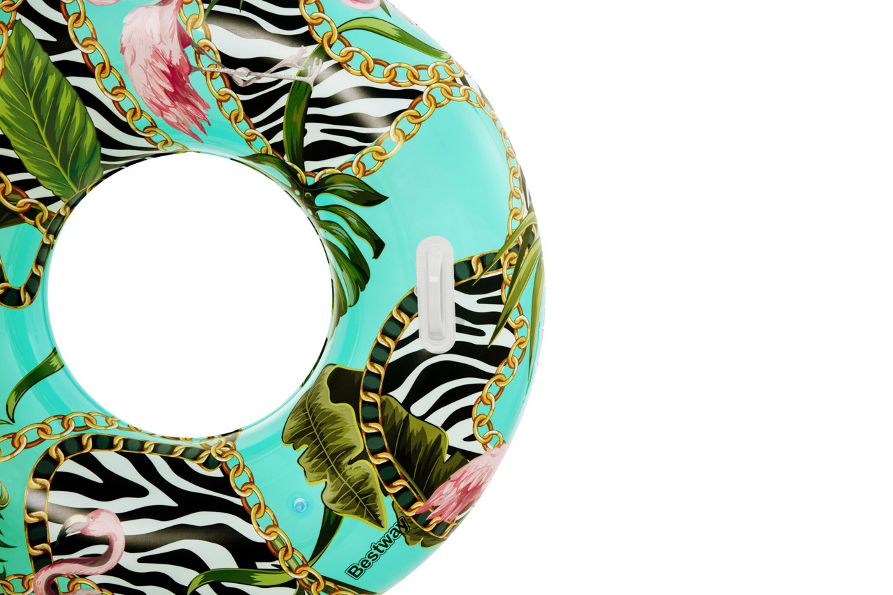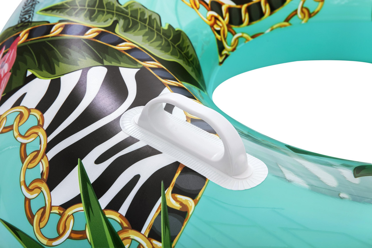 Nafukovací kruh s motivem divočiny. Vyrobeno z velmi odolného materiálu. Dvě robustní plastové rukojeti. Bezpečnostní ventily pro snadné nafouknutí a vyfouknutí. Průměr: 114cm Věk: 12+