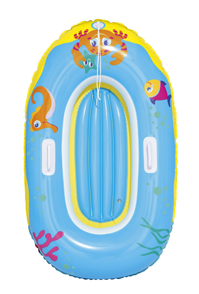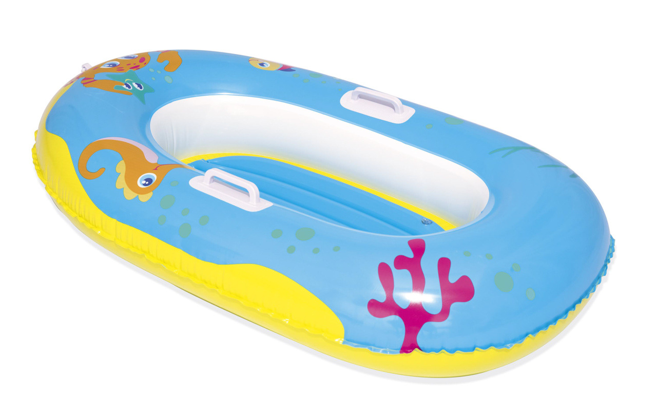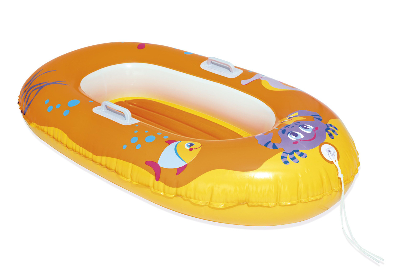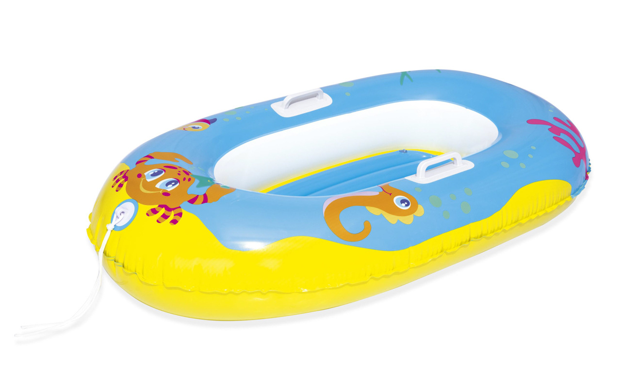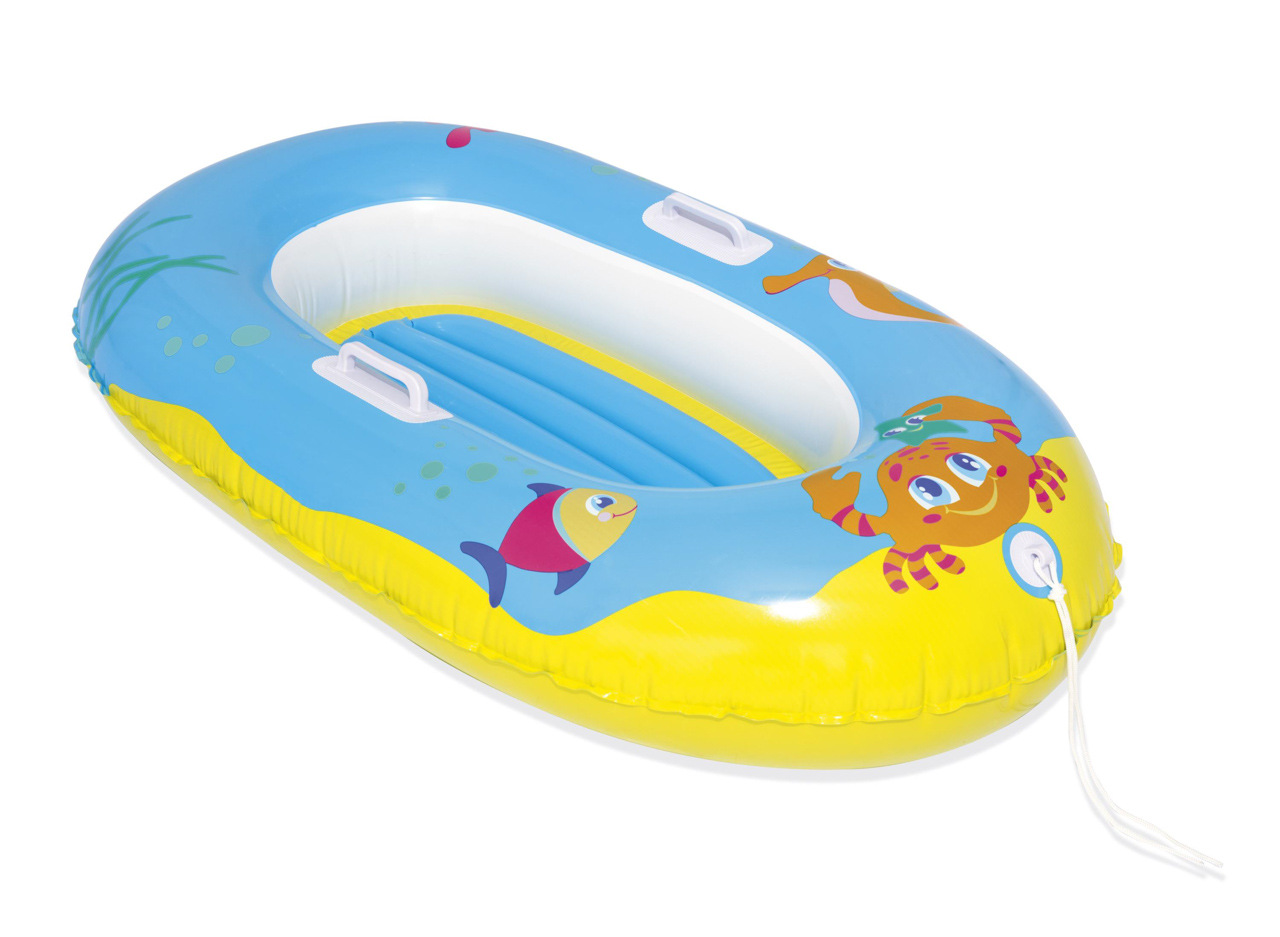 Dětský nafukovací člun Bestway. Nádherné barevné provedení s obrázky mořských zvířátek (dvě barevné varianty – modrá a žlutá). Průhledné okénko v úrovni hlavy je navrženo tak, aby děti mohly pozorovat vše, co se děje pod hladinou. Pro pohodlné sezení je nafukovací také dno člunu. Pro možnost tažení je součástí i provaz/lanko, které je pevně uchyceno v plastovém oušku. Dopřejte svým dětem pohádkové lenošení na vodě. Vyroben z kvalitního a odolného vinylu. Rozměr: 102 x 69 cm. Obsahuje: 1 nafukovací člun. Používejte pouze pod dohledem dospělé osoby. Věk: 3-6 let