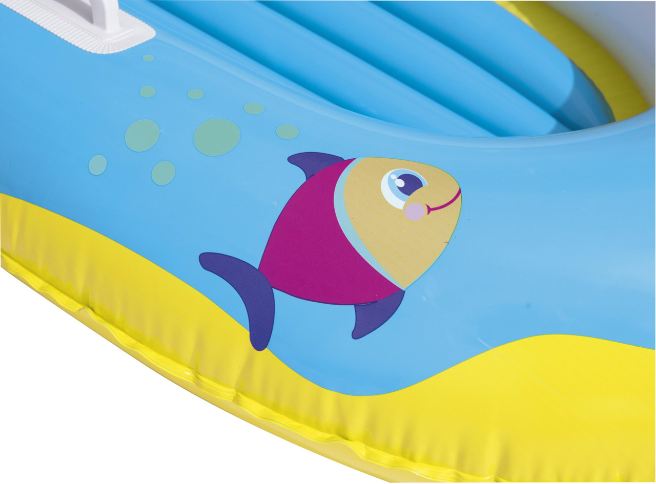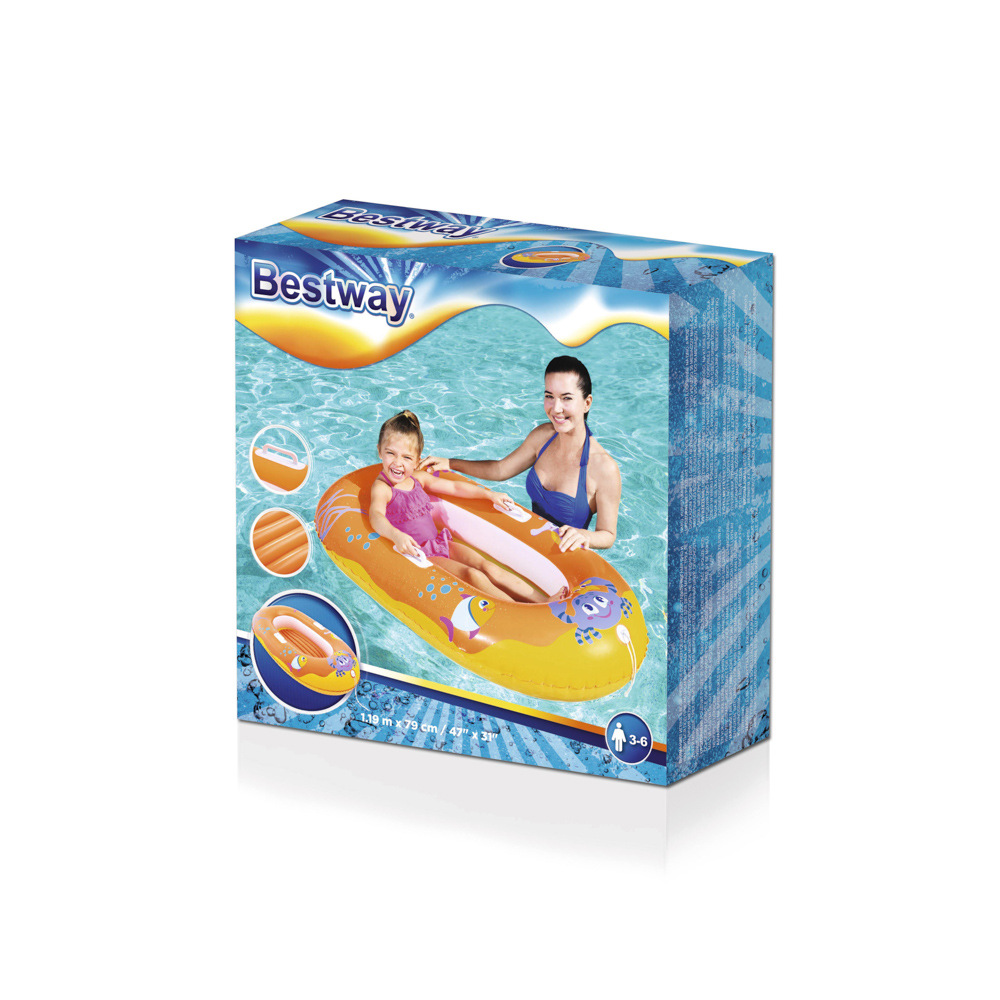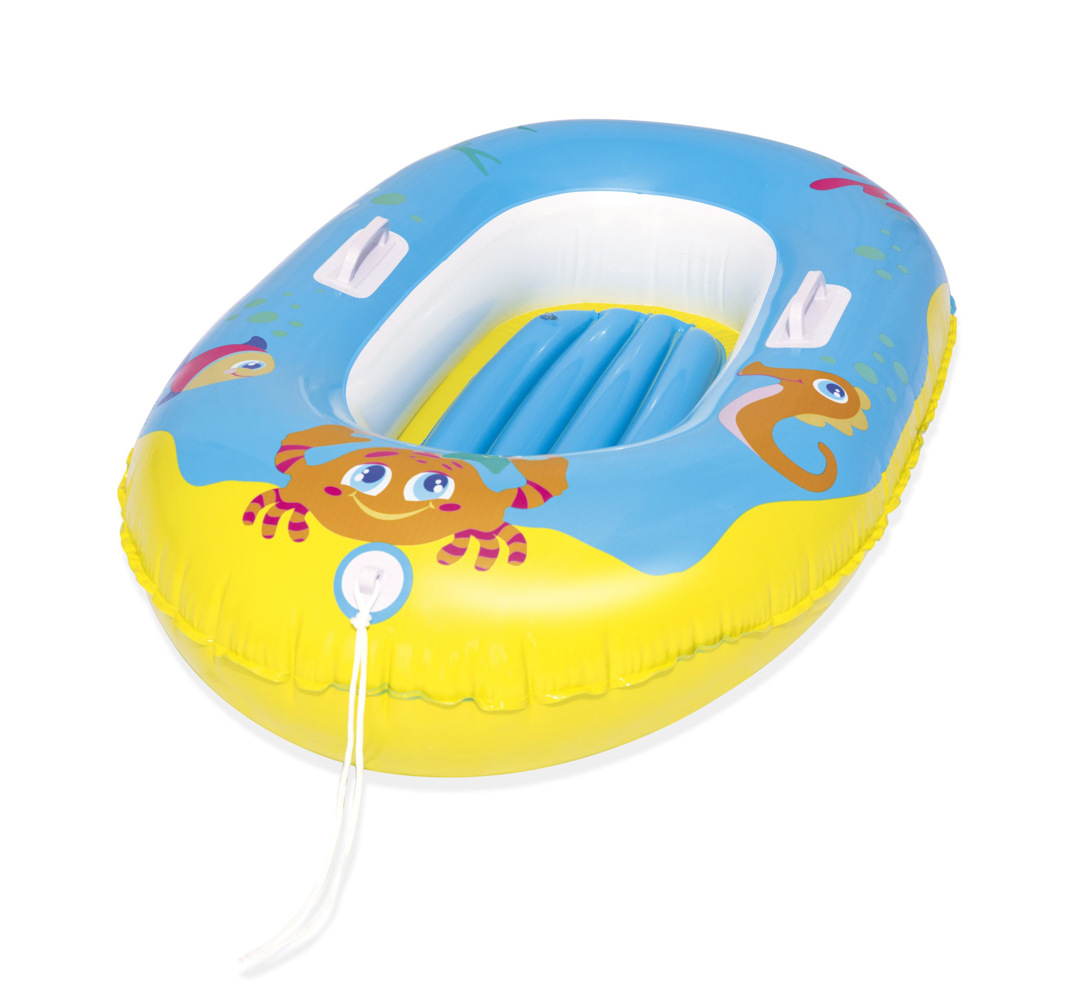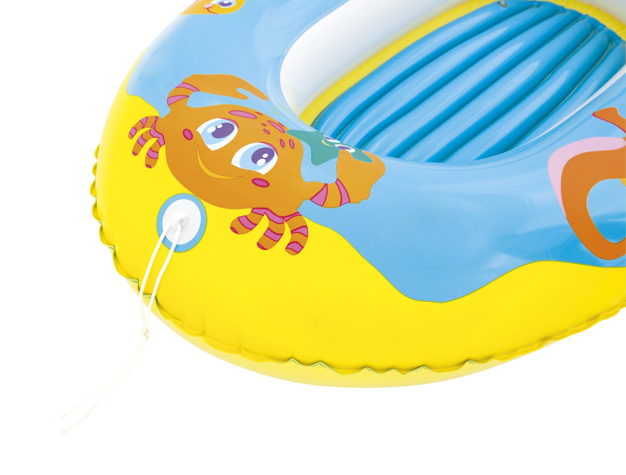 Dětský nafukovací člun Bestway. Nádherné barevné provedení s obrázky mořských zvířátek (dvě barevné varianty – modrá a žlutá). Průhledné okénko v úrovni hlavy je navrženo tak, aby děti mohly pozorovat vše, co se děje pod hladinou. Pro pohodlné sezení je nafukovací také dno člunu. Pro možnost tažení je součástí i provaz/lanko, které je pevně uchyceno v plastovém oušku. Dopřejte svým dětem pohádkové lenošení na vodě. Vyroben z kvalitního a odolného vinylu. Rozměr: 102 x 69 cm. Obsahuje: 1 nafukovací člun. Používejte pouze pod dohledem dospělé osoby. Věk: 3-6 let