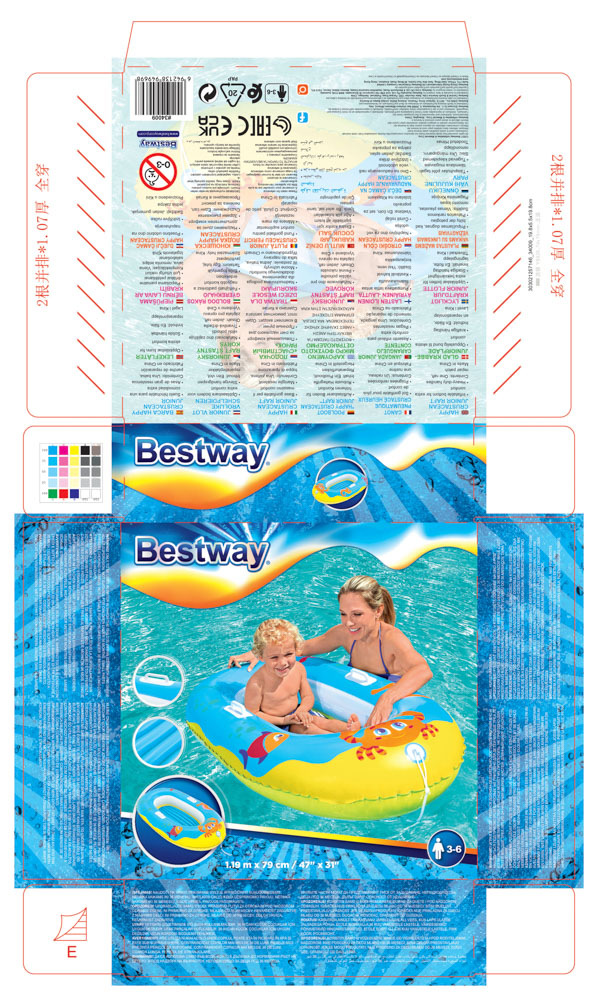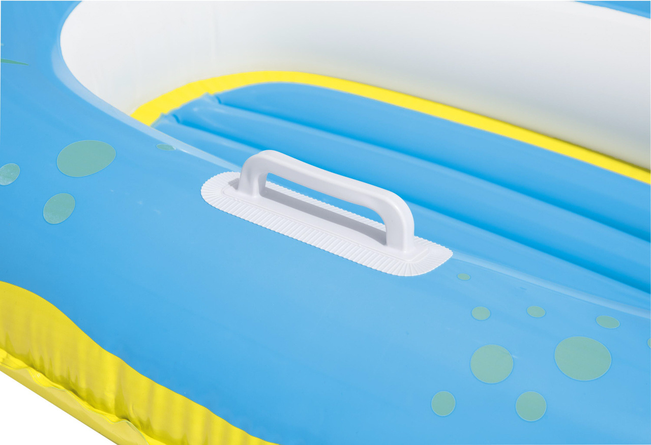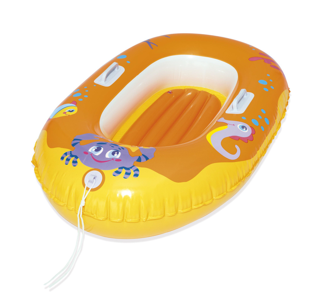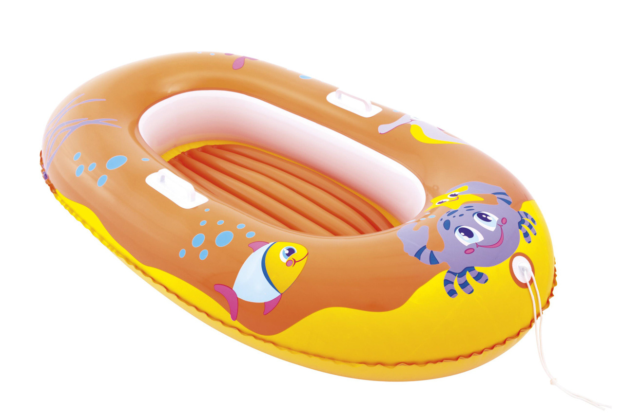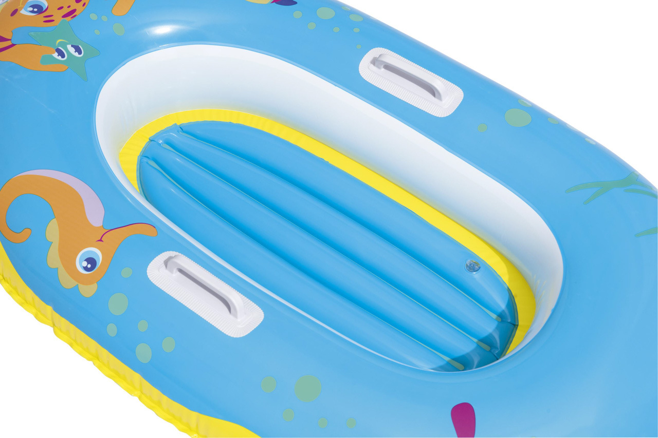 Dětský nafukovací člun Bestway. Nádherné barevné provedení s obrázky mořských zvířátek (dvě barevné varianty – modrá a žlutá). Průhledné okénko v úrovni hlavy je navrženo tak, aby děti mohly pozorovat vše, co se děje pod hladinou. Pro pohodlné sezení je nafukovací také dno člunu. Pro možnost tažení je součástí i provaz/lanko, které je pevně uchyceno v plastovém oušku. Dopřejte svým dětem pohádkové lenošení na vodě. Vyroben z kvalitního a odolného vinylu. Rozměr: 102 x 69 cm. Obsahuje: 1 nafukovací člun. Používejte pouze pod dohledem dospělé osoby. Věk: 3-6 let