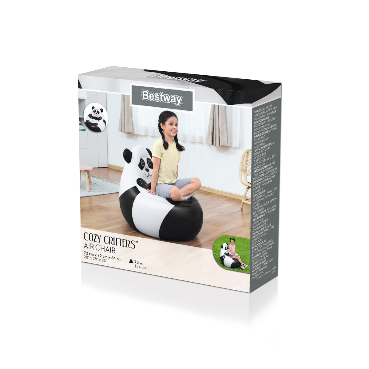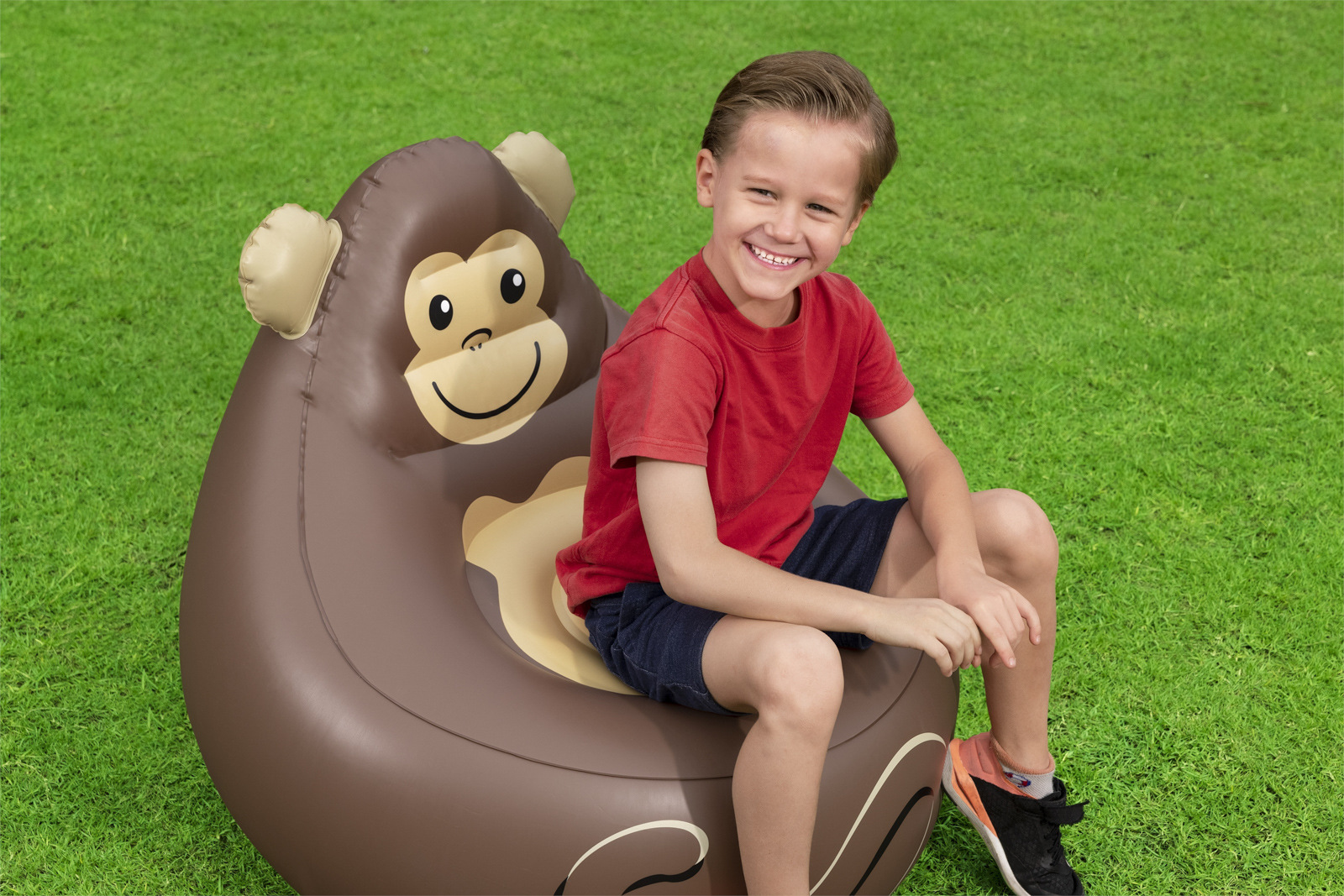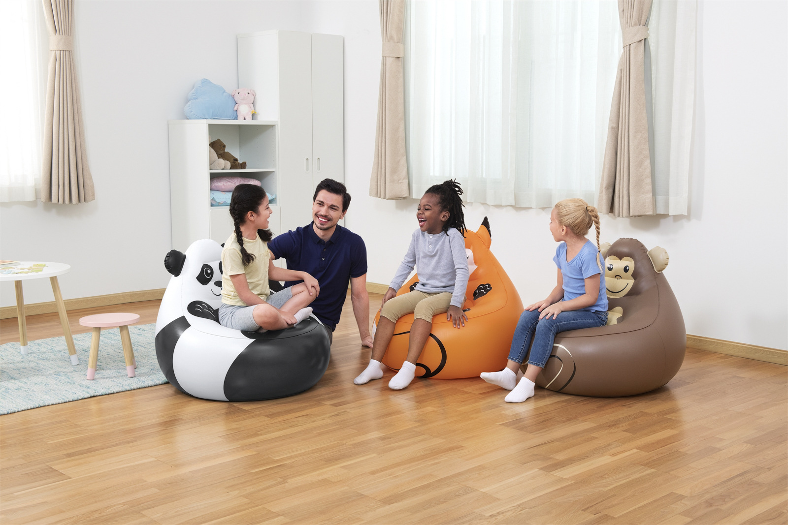 Pohodlné dětské nafukovací křesílko ve veselém zvířecím designu - liška panda či opice. Obsahuje opravnou sadu. Nosnost: 70kg. Rozměry: liška - 72x72x72cm, panda - 72x72x64cm, opice - 72x72x64cm. Věk: 3+