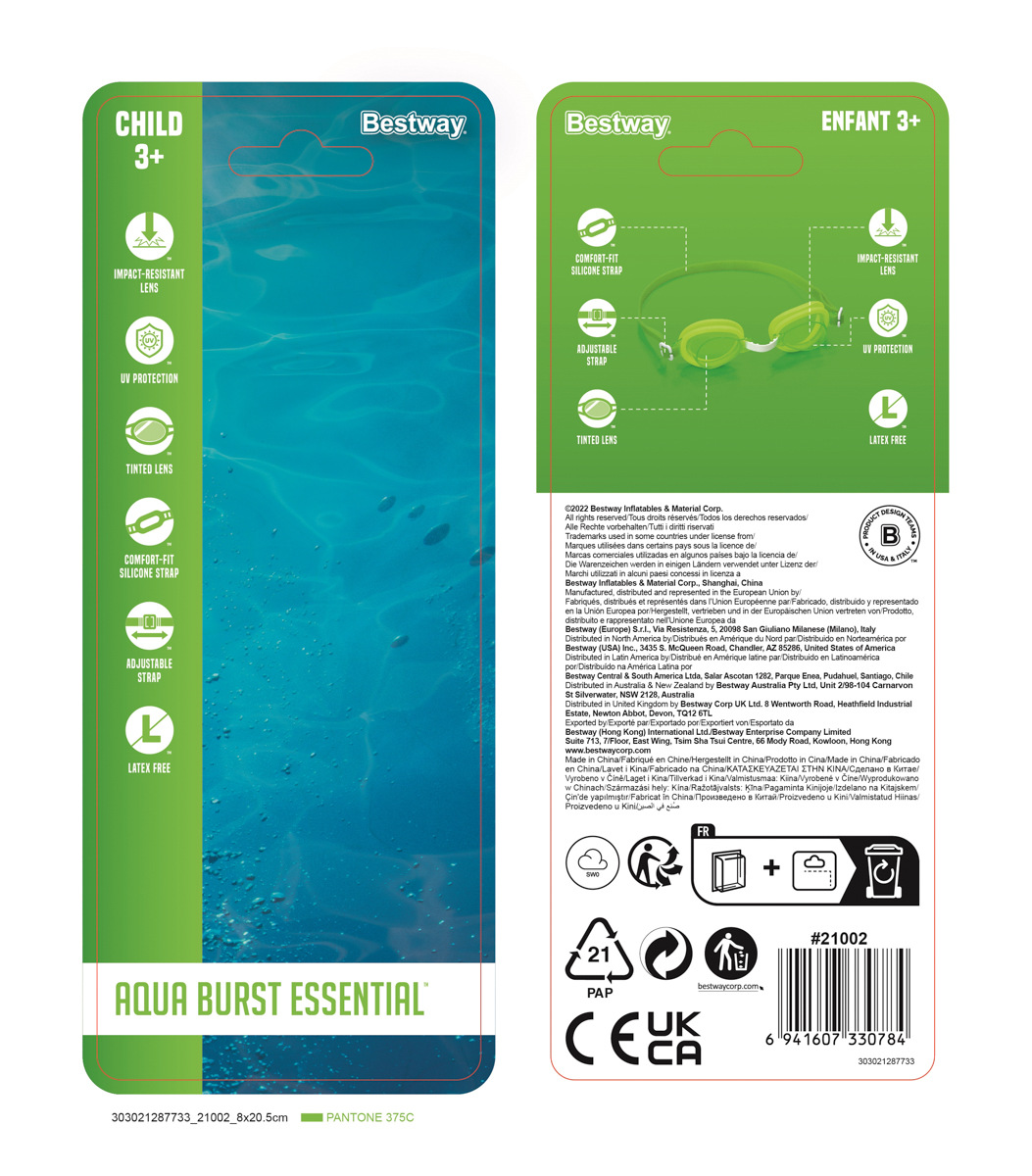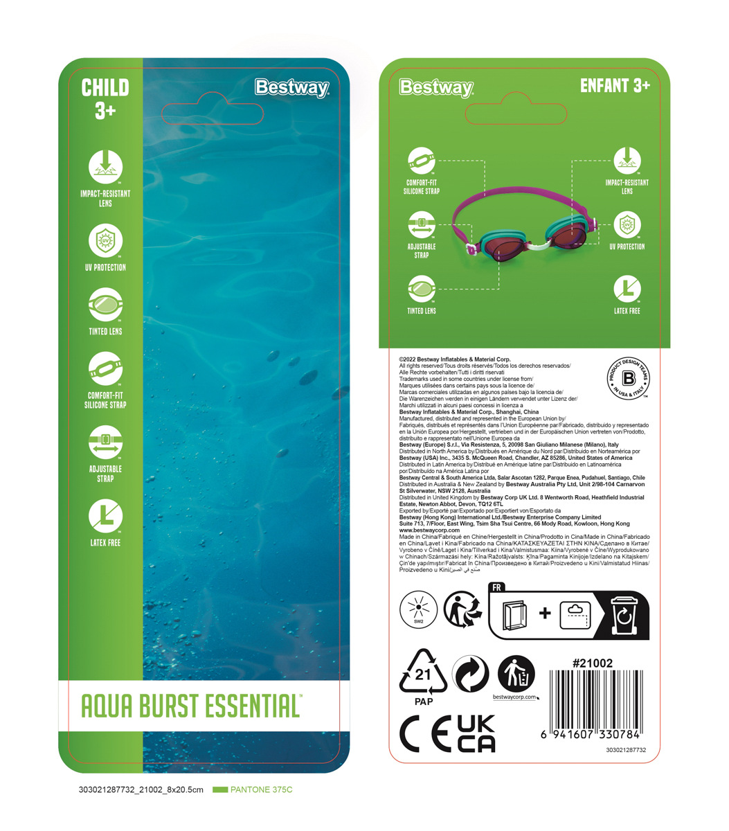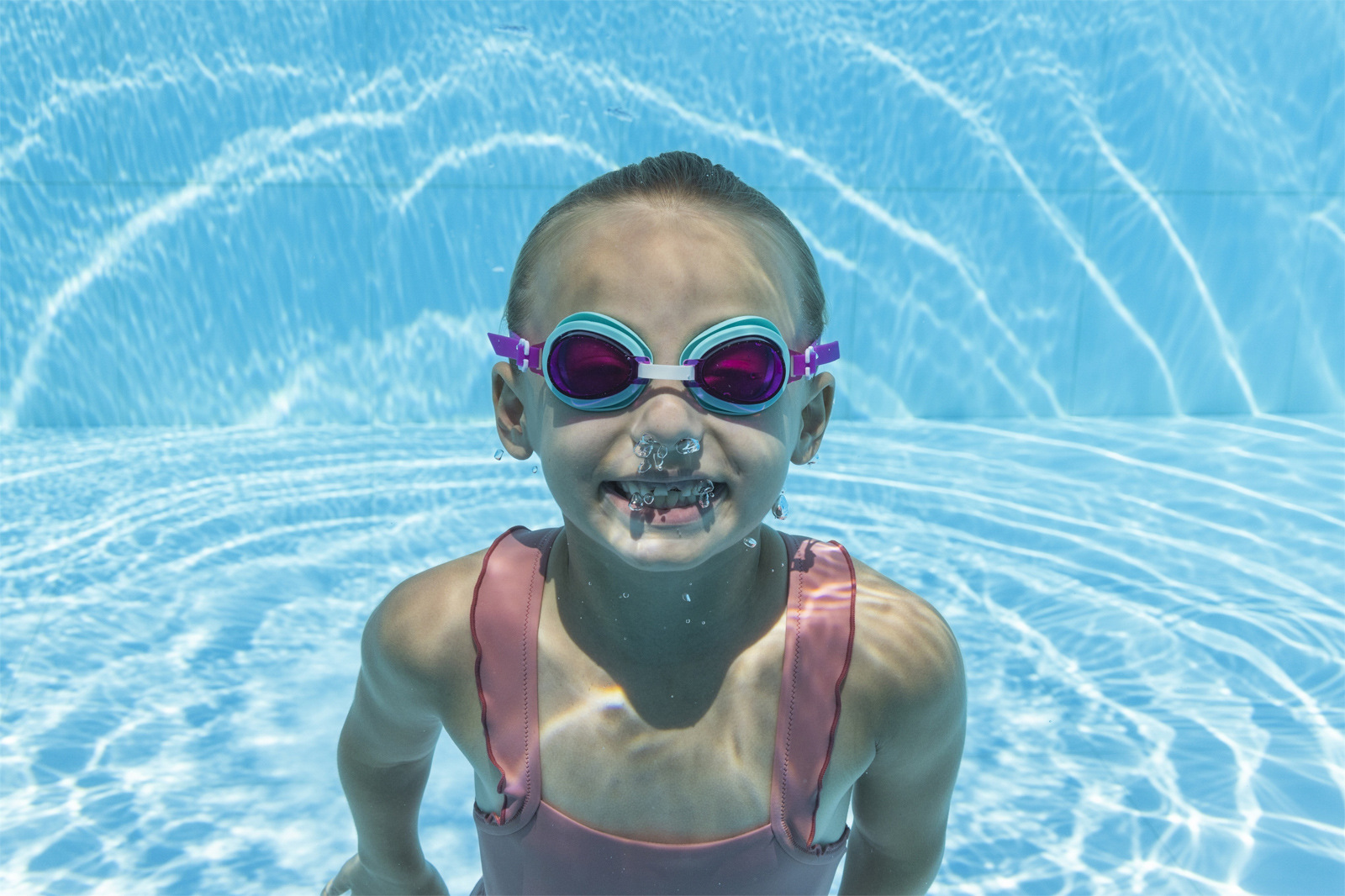 Měkké a pohodlné plavecké brýle Bestway pro děti s barevnými čočkami. Širokoúhlá skla s ochranným povrchem chránící proti UV záření. Plně nastavitelný nosní můstek a silikonový pásek na hlavu. 100% bez latexu. 3 barevné provedení (růžová, modrá, zelená). Věk: 3+