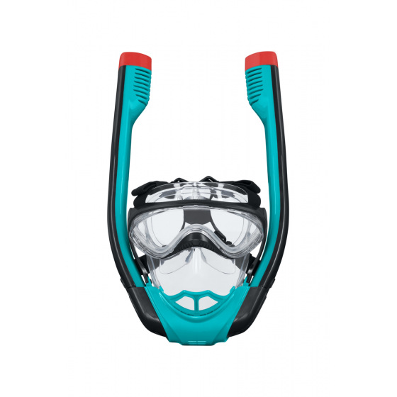 Kompletní šnorchlovací maska pro dospělé se dvěma šnorchly. Stačí nasadit a dýchat stejně jako na souši. Oddělené trubice pro nádech a výdech pro čerstvý vzduch při každém nádechu. Snadno nastavitelné popruhy, tónovaná skla a vysoce kvalitní silikon, který poskytuje pohodlné a bezpečné uchycení a schopnost vyrovnávat tlak. Koncovky Full Dry zabraňují vniknutí vody do šnorchlu. Rozměry: 21,5 x 37 x 9,5 cm. Věk: 14+