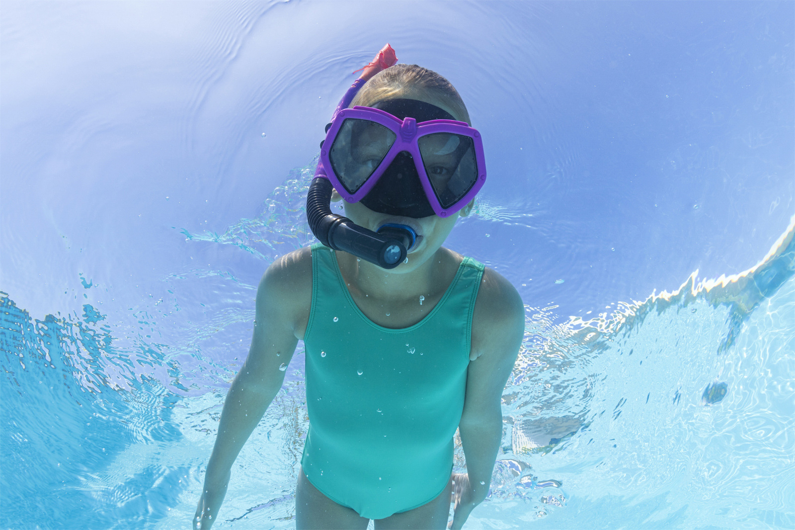 Bestway šnorchlovací set Essential – ploutve, brýle, šnorchl. Brýle mají bezpečnostní čočky s ochranným povrchem chránícím proti UV záření. Měkký lem bránící vnikání vody. Plně nastavitelný pásek na hlavu. Šnorchl má tvarově přizpůsobivý náustek. Ploutve s nastavitelným patním páskem jsou ve velikostech: EUR (24-27), USA (8-10). 100 % bez latexu. 2 barevné provedení - žluto-růžová, modro-zelená Obsahuje: 1 brýle, 1 šnorchl, 1 ploutve. Věk: 3+