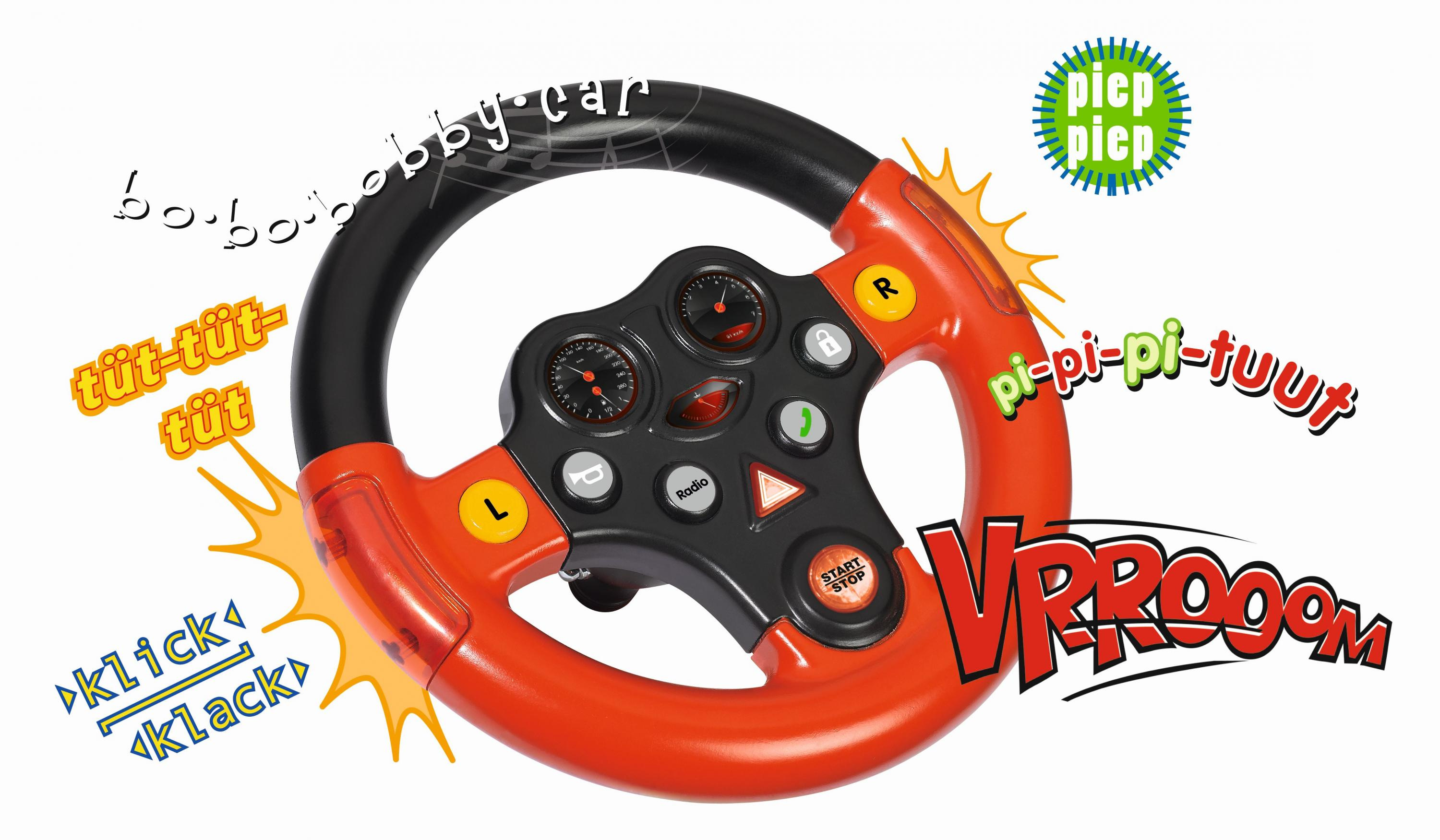 Multifunkční volant se světelnými a zvukovými efekty. Kompatibilní se všemi Bobby Car odrážedly od roku 2010. Funkce: ukazatel odbočení vlevo/vpravo (LED světlo) + přísl. zvuk, zvuk zamykání auta, klakson, zvuk vytáčení tel. čísla a vyzvánění, zvuk startování a samozřejmě rádio. Průměr volantu 19,5 cm. Věk: 1+