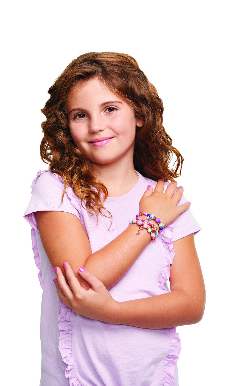 Výroba náramků z bavlnek a korálků. Korálky se vkládají nebo navlékají na bavlky, které jsou součástí balení. Obsahuje mnoho barevných a blýskavých korálků. Baleno v krabici. Doporučený věk 8+