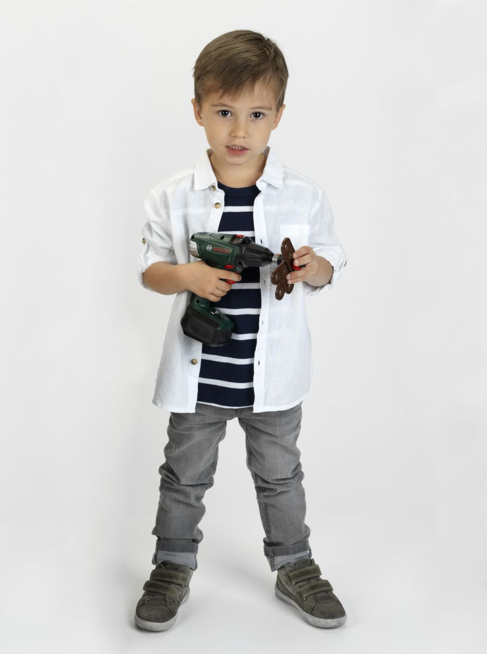 Aku vrtačka pro malé pomocníky v licenci Bosch. Vrtačka vydává zvuky, svítí a vypadá jako opravdová. Na baterie 3xR6. Doporučený věk 3+