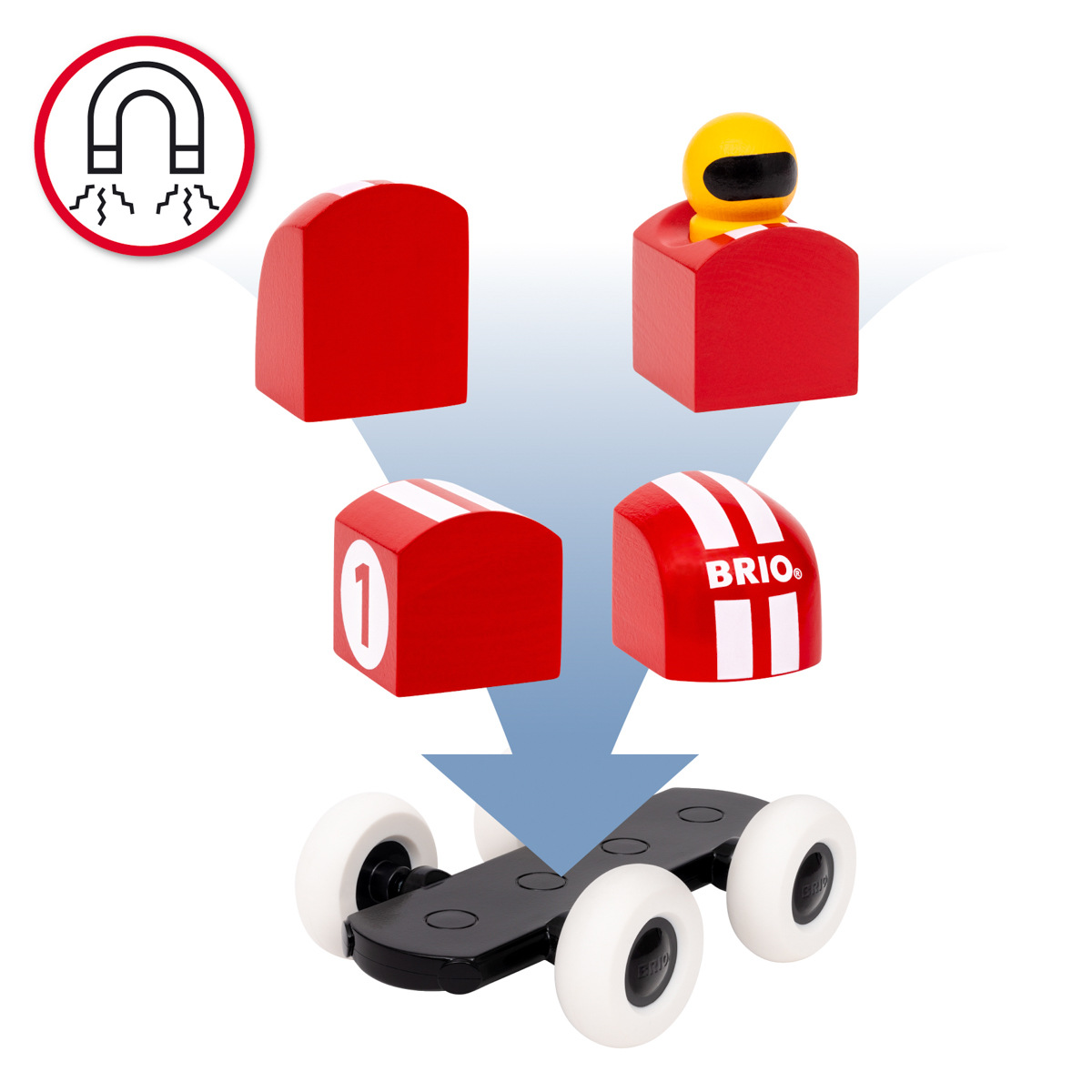Magnetické závodní auto – dřevěná stavebnice. Použijte 5 magnetických dílků a postavte si autíčko v libovolných krocích. Sestavování je pro malé děti zábavné a příjemné díky magnetům, které se snadno spojují. Pak už jen 3, 2, 1... START! A začne závod na podlaze. Závodní autíčko, vycházející z ikonického designu závodního auta BRIO, je ideální pro děti od 12 měsíců. Rozměry balení: 15,2 x 19,6 x 5 cm.