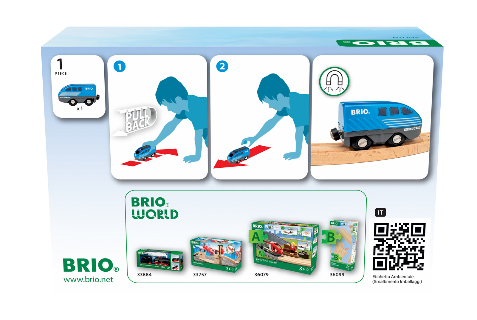 Tento Pull Back vláček, který běží na 100% batolecí energii, nepotřebuje žádné baterie, aby vykouzlil úsměvy na malých tvářičkách. Natáhněte modrý vláček a sledujte, jak plynule jede po kolejích. Když uvidíte varovné signály, že mu dochází energie, znovu jej natáhněte a je zpátky v provozu. Se snadno použitelnou funkcí a klasickým magnetem BRIO je tento vláček skvělým doplňkem jakéhokoli světa BRIO, který přináší nekonečnou radost malým inženýrům. Certifikace FSC®: ne. CE certifikace: Ano. Rozměry vláčku: 5 x 10,2 x 3,8 cm. Rozměry balení: 10 x 15 x 5 cm. Věk: 3+