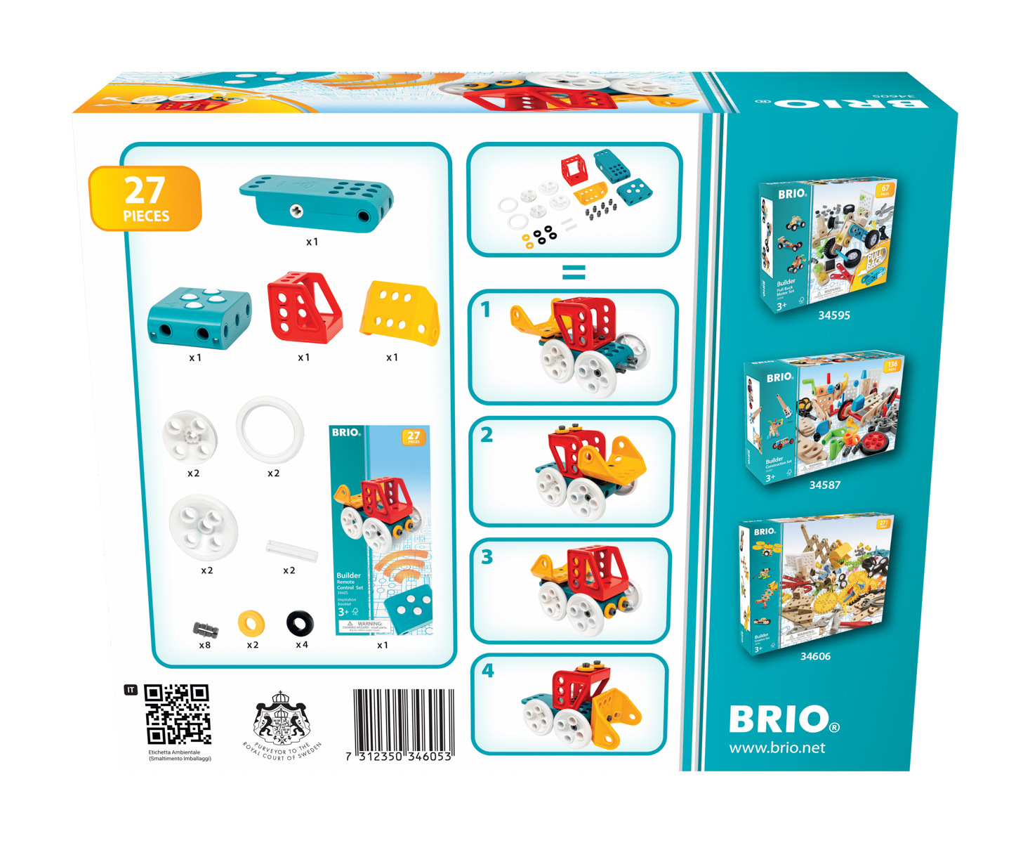 Sestavte si svůj první rádiem řízený vůz se sadou s dálkovým ovládáním 34605 Brio Builder. Díky čtyř směrnému řízení, vysoce kvalitním materiálům odolným proti nárazu a snadno použitelnému dálkovému ovládání je tato hračka ideální pro děti, které si rády hrají s vozidly. Postavte karoserii auta kolem motorové jednotky, připevněte kola a poté uchopte ovladač. Díky rozšiřitelnému designu BRIO Builder lze toto dálkově ovládané auto upravit podle vašich představ a lze jej také přidat k vašemu stávajícímu BRIO Builder. Sada obsahuje 27 dílů. Rádiový rozsah 2,4 GHz. Dosah ovládání je až 15 m. Jazykové mutace: CZ, SK, EN. Certifikace FSC®: ne. CE certifikace: Ano. Hračka funguje na 5 baterií AAA, které nejsou součástí. Rozměry balení: 20 x 25 x 7 cm. Věk: 3+