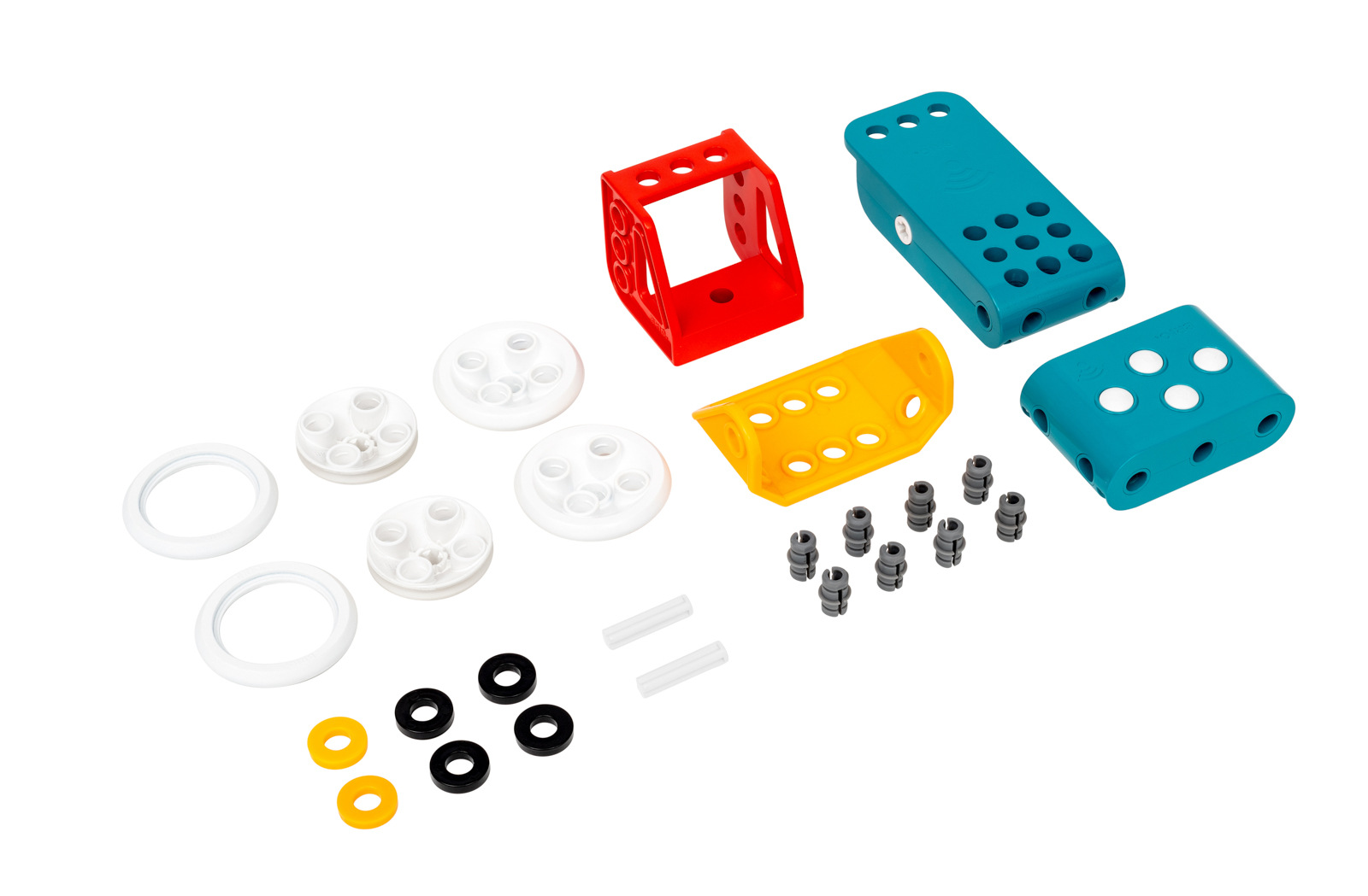 klíč a kleště, plus všechny důležité matice, šrouby, vruty a provrtané materiály, které děti potřebují.