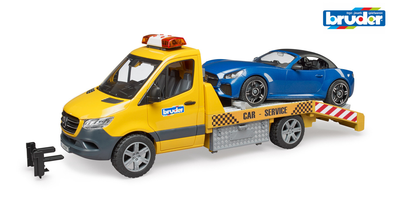 Průkopnický, efektivní, spolehlivý – tak Mercedes Benz popisuje nový Sprinter. I v nejnovější generaci zůstává všestranným a všeobecně oblíbeným dopravním profesionálem. Elegantní a moderní design autopřepravníku zaujme na první pohled. Automobilová odtahovka má platformu, která do posledního detailu vychází z originálu. Kromě kvalitních dveří s vnitřním obložením a světelným a zvukový modul, zaujme především lanový naviják. S tímto lanovým navijákem mohou být vozidla v nouzi osvobozena i od těch nejobtížnějších situací. Na boku připevněné boxy na nářadí slouží k uložení zakládacích klínů a rampy lze také zasunout přímo do podvozku. Naložený Roadster má odnímatelnou střechu a nabízí prostor pro každou figurku bworld. Pro ještě větší zábavu má vozidlo nainstalovaný nový systém výměny kol. Měřítko: 1:16. Baterie: 3×1,5V LR44 (jsou součástí). Rozměr balení: 20,5 x 19,5 x 50,5 Věk: 4+