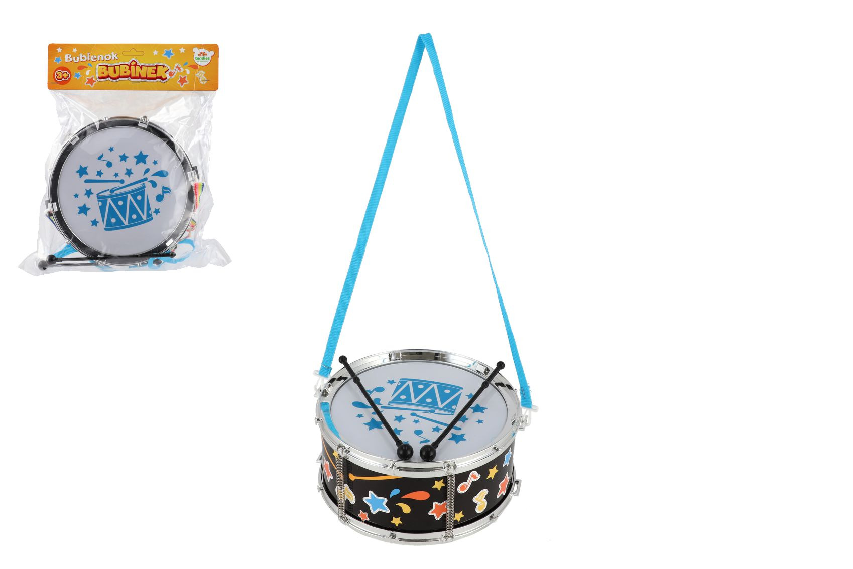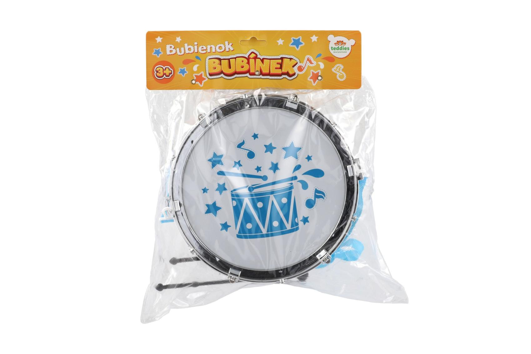 Popis Buben/Bubínek plast 23x10cm s popruhem a paličkami v sáčku