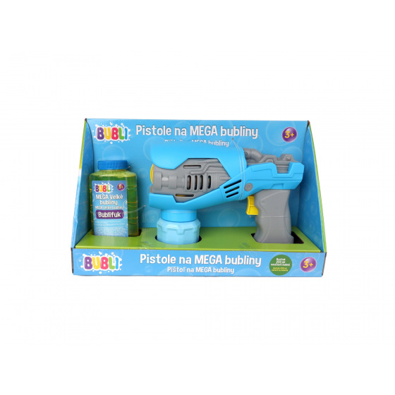 Pistole, se kterou vytvoříte skvělé mega bubliny pouhým stisknutím. Součástí balení je i bublifuk.