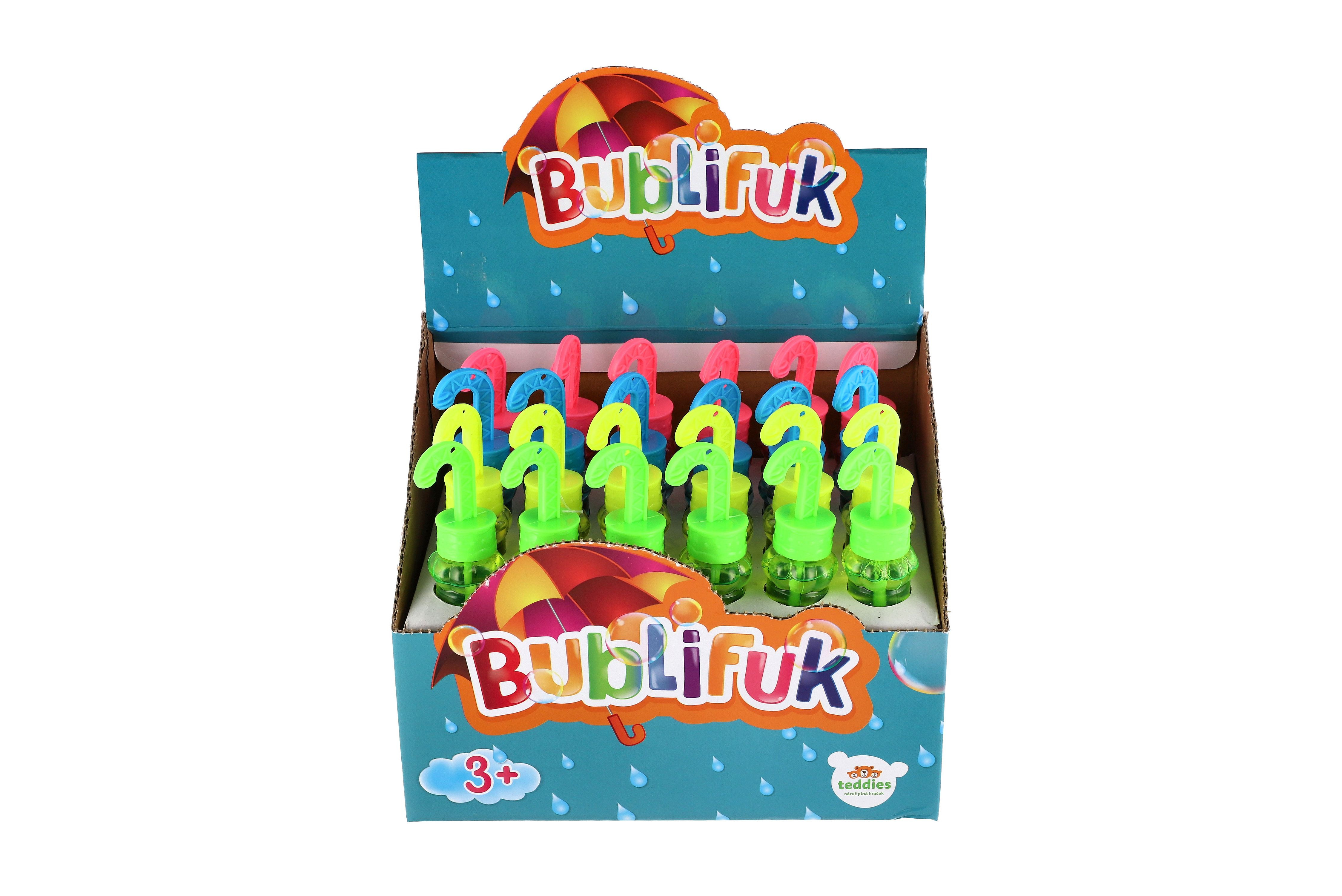 Bubliny jsou jako kouzelné balonky, které si dítě může vykouzlit a obdivovat jejich duhovou barvu. Bublifuk je ve tvaru deštníku 14 cm. Je to velmi vděčná hračka, které vaše dítě zabaví. Výborná hračka na dětskou párty! Vhodné pro děti od 3 let.