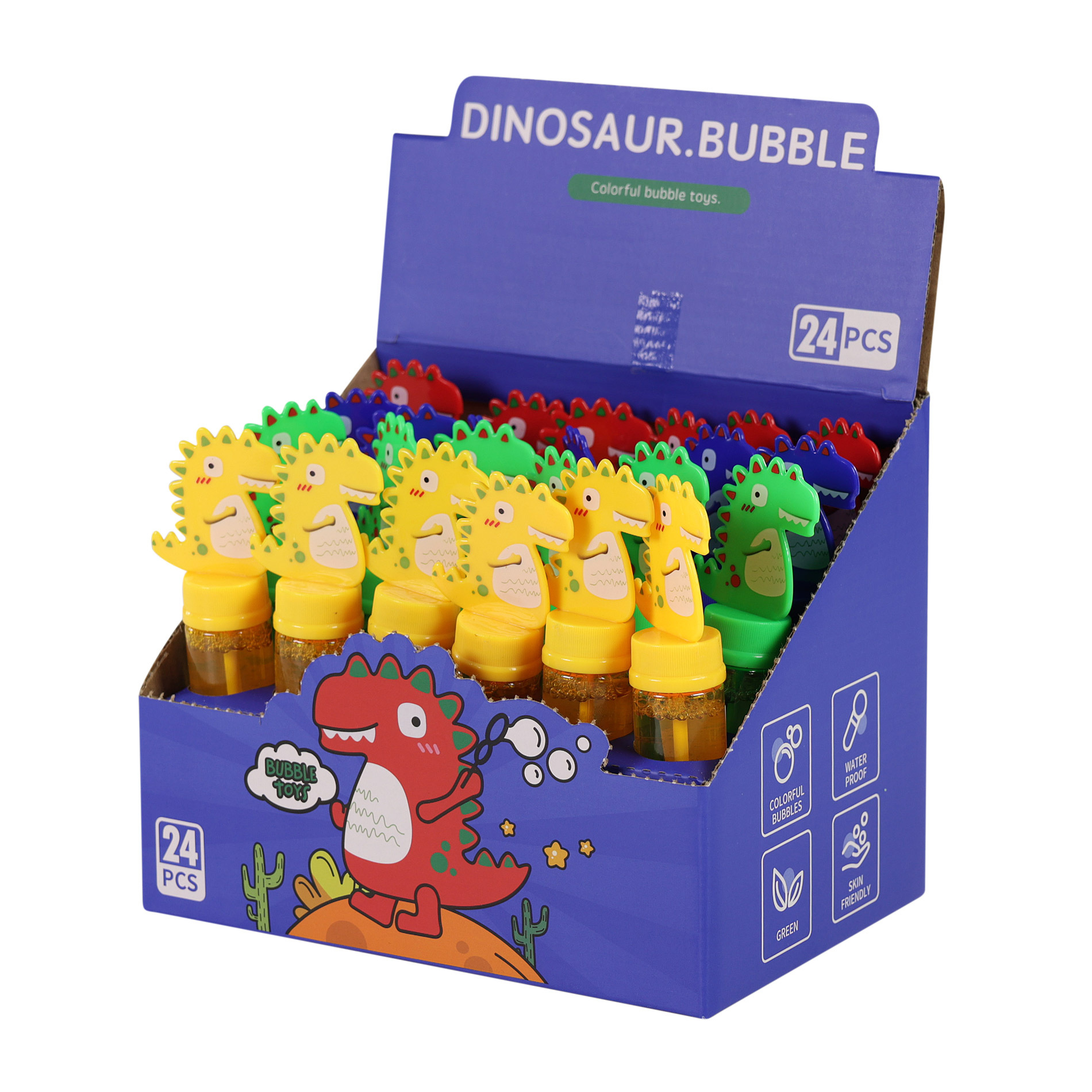 Barevný bublifuk s motivem dinosaura má obsah 35 ml. Foukátko je součástí víčka. S tímto zábavným ko