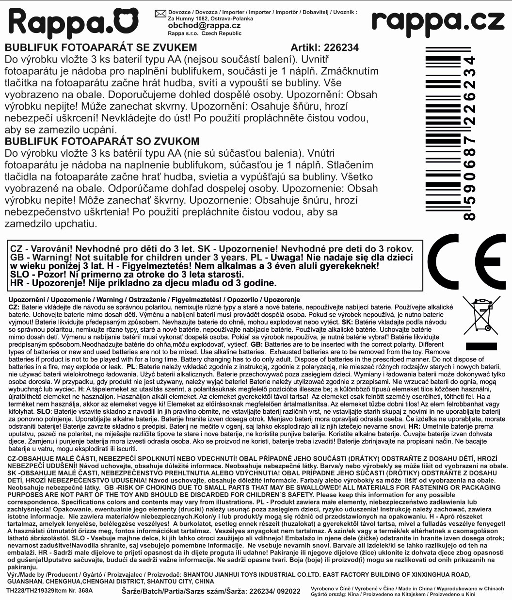 Fotoaparát jako bublinkovač! Užij si miliony bublinek, které se při mačkání spouště z fotoaparátu spustí. Ideální pro hru venku nebo v interiéru. Funguje na 3 ks baterí typu AA, které nejsou součástí balení. Naplň zásobník bublifukem a zábava může začít!