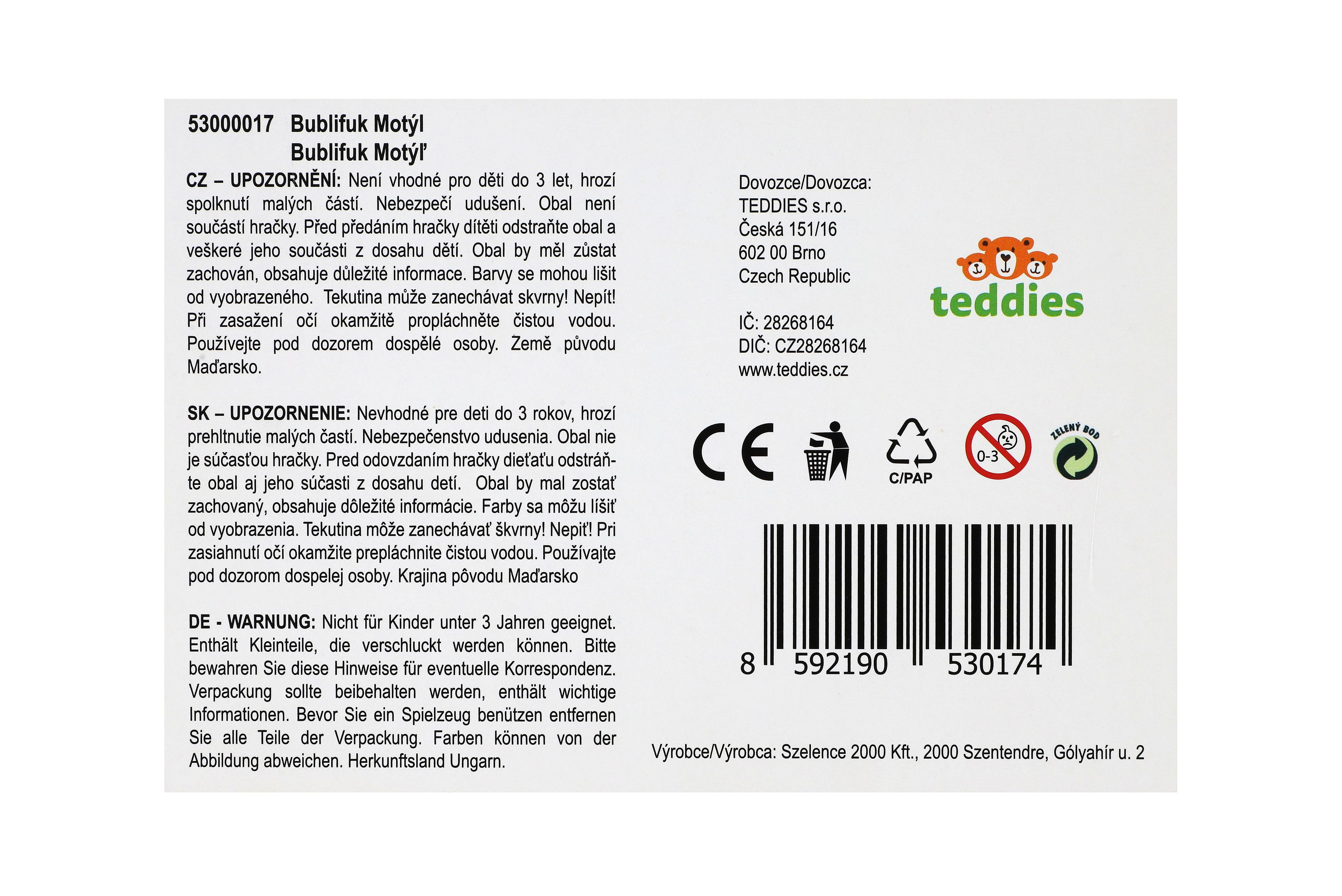 Popis Teddies Bublifuk Motýl 50ml 11cm mix druhů 30ks v boxu
