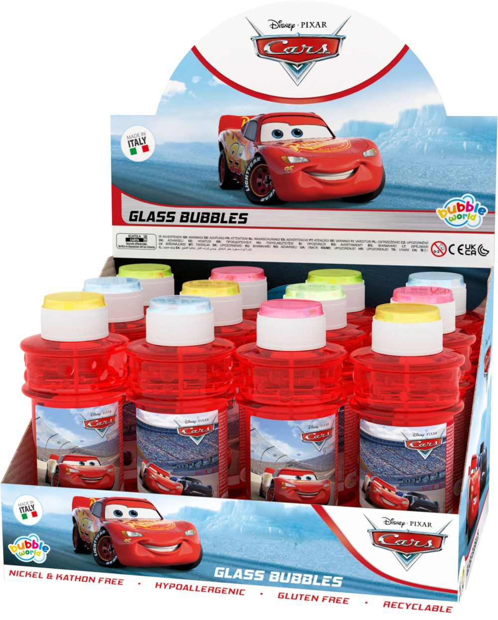 Bublifuk s motivem Aut (Cars) o obsahu 175 ml. Součástí barevného víčka je hra a foukátko. Lze zakoupit i jako celý display, kde je 16 ks.