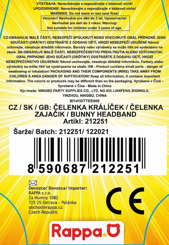 Rappa Čelenka fialová s ušima králíčka dětská