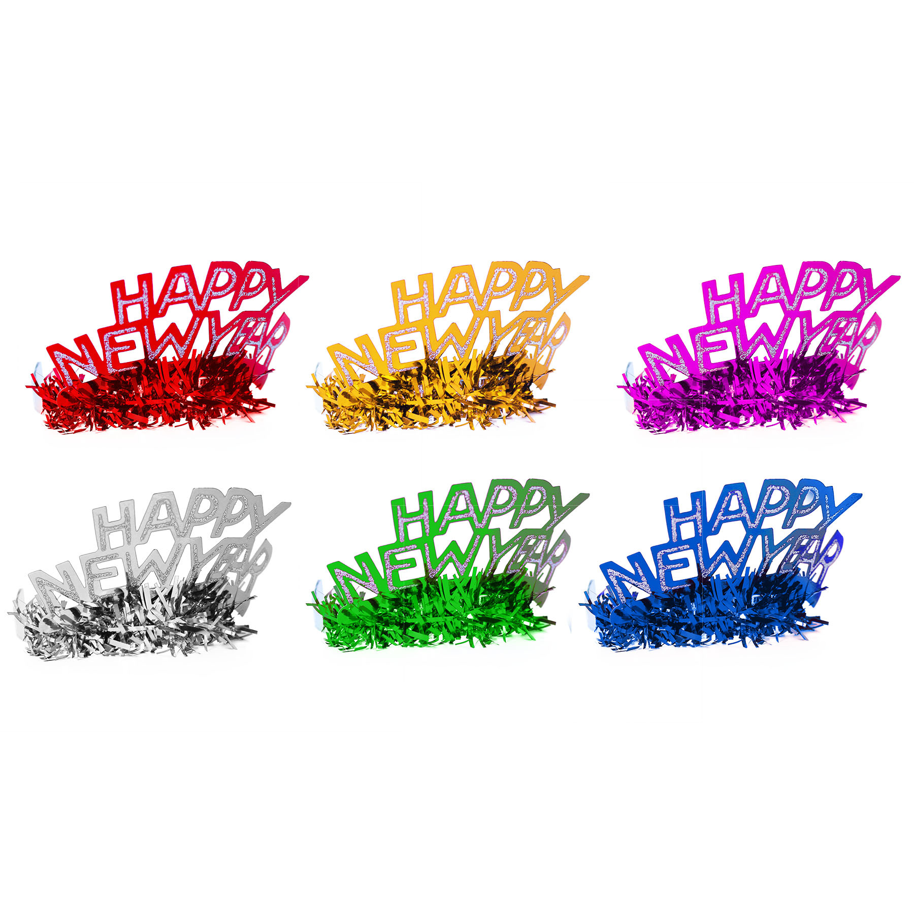 Barevné metalické čelenky s nápisem HAPPY NEW YEAR jsou senzačním doplňkem na oslavu nebo večírek př