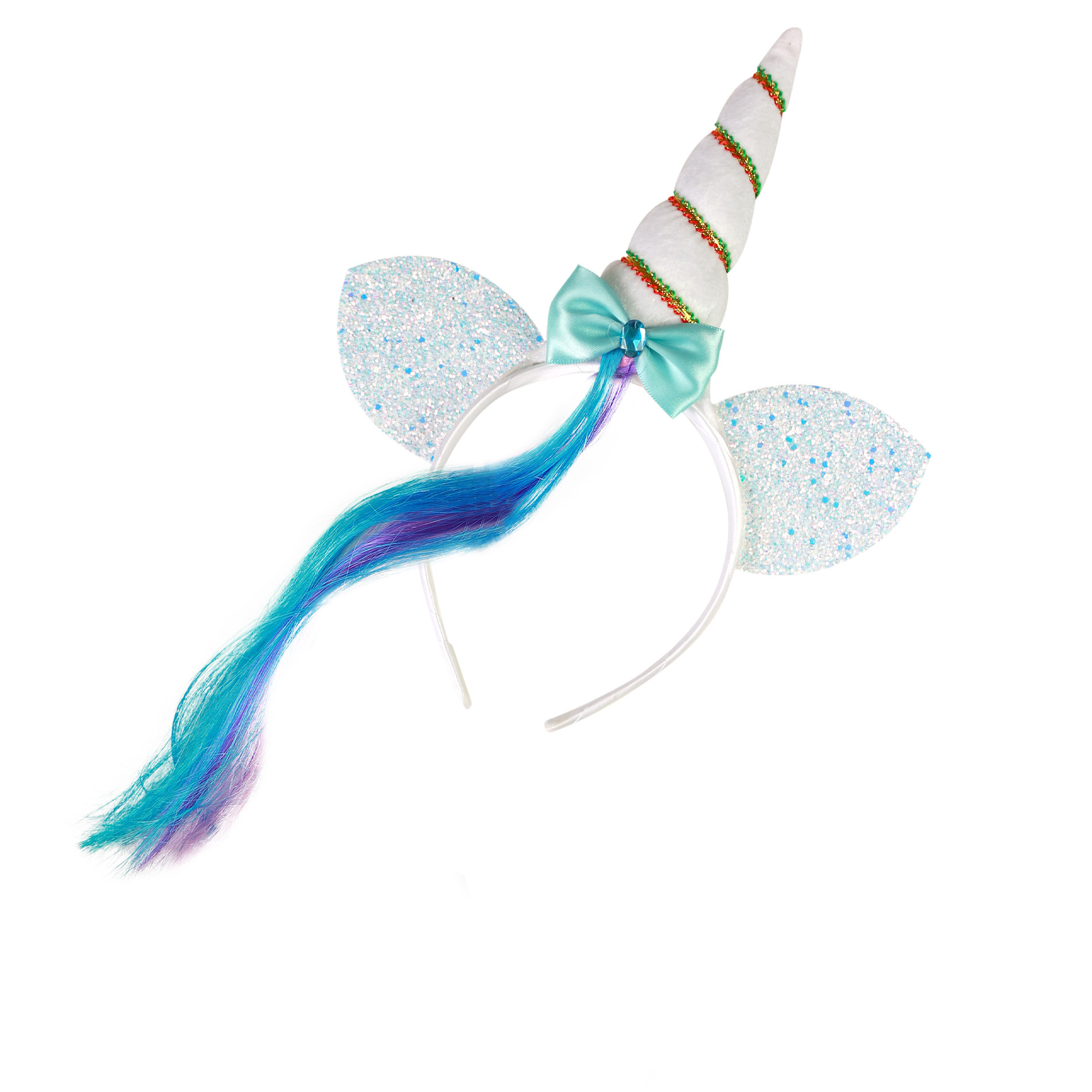 Senzační karnevalová čelenka ve stylu jednorožce! Bílá čelenka s rohem se stříbrnýma ušima, ozdobená