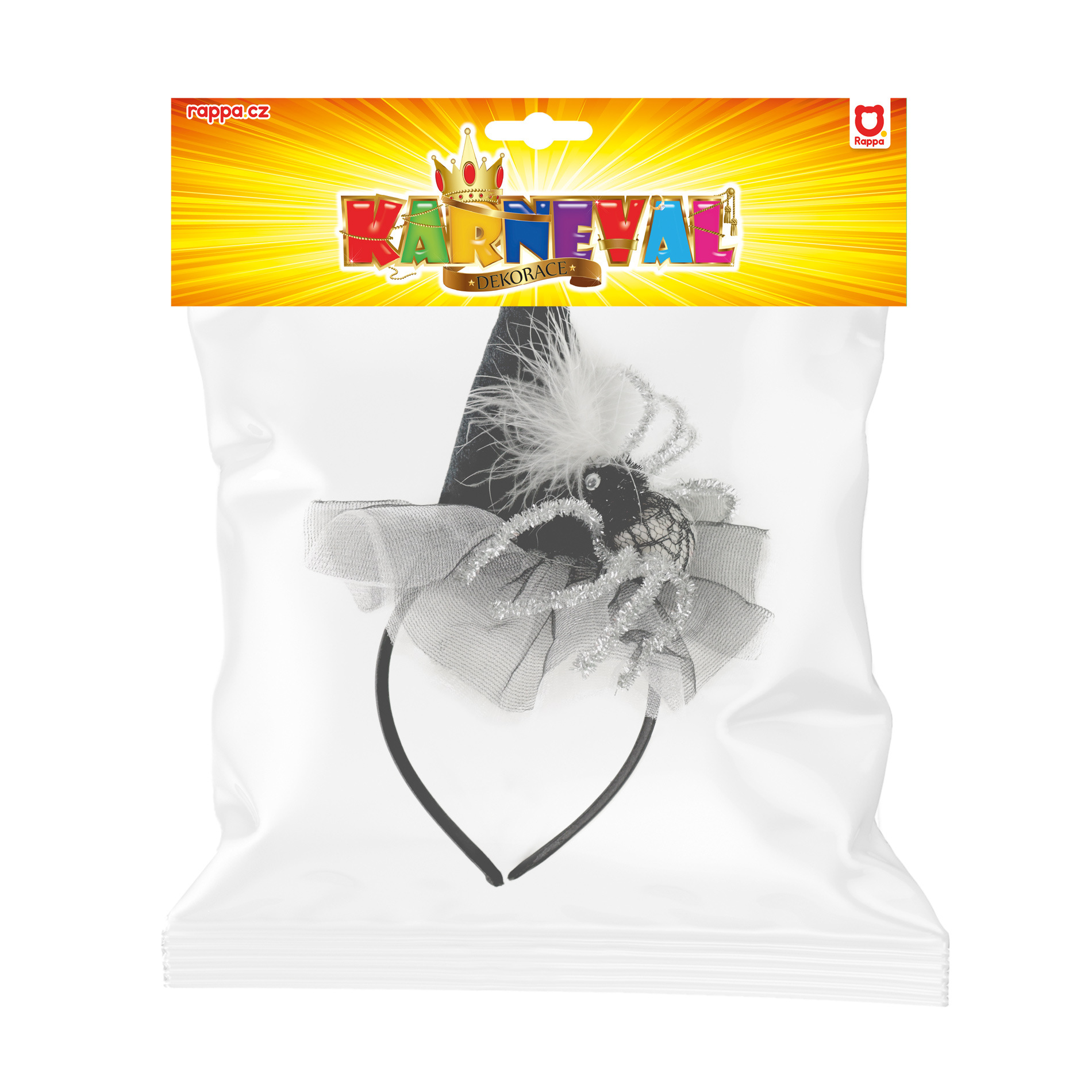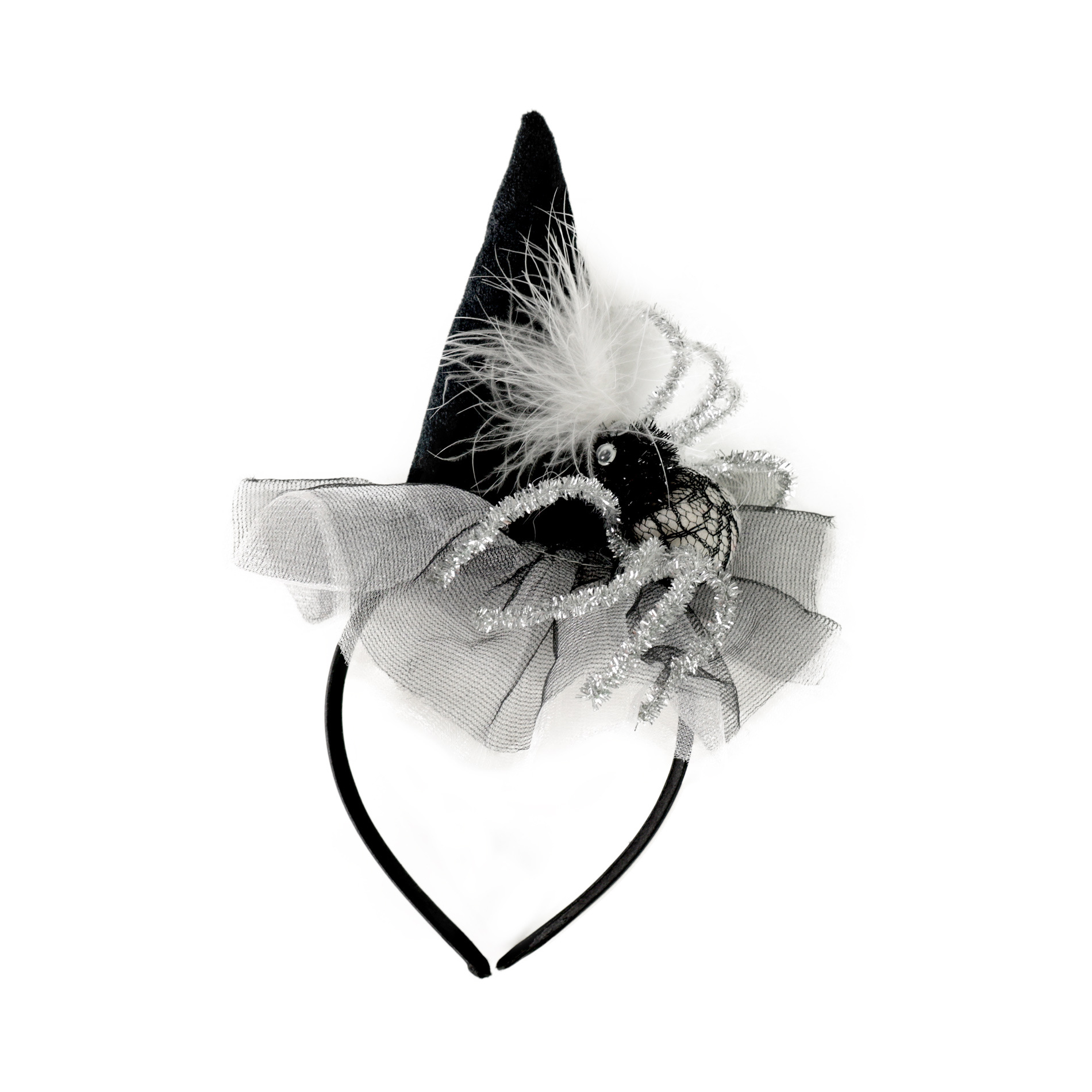 Nepřehlédnutelná čelenka s mini kloboučkem a pavoukem je senzačním doplňkem na párty či karneval. Id