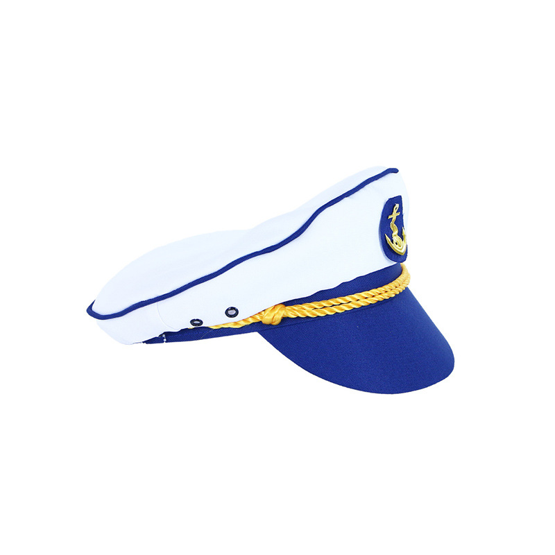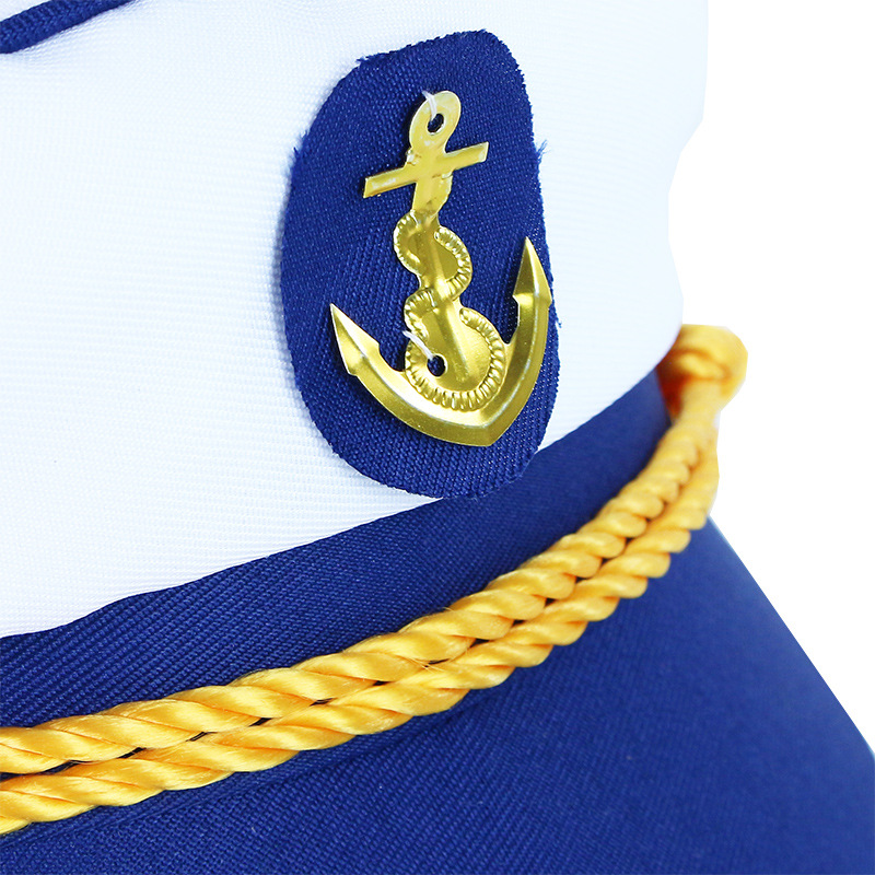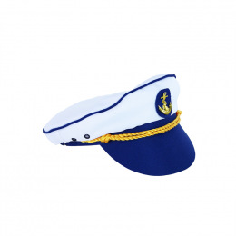 Stylová námořnická čepice pro malé námořníky! Bílá námořní čepice s modrým kšiltem a lemováním je vpředu dekorována zlatou podkovou. Díky této nepřehlédnutelné čepici budeš hvězdou karnevalu a určitě ohromíš všechny své kamarády!