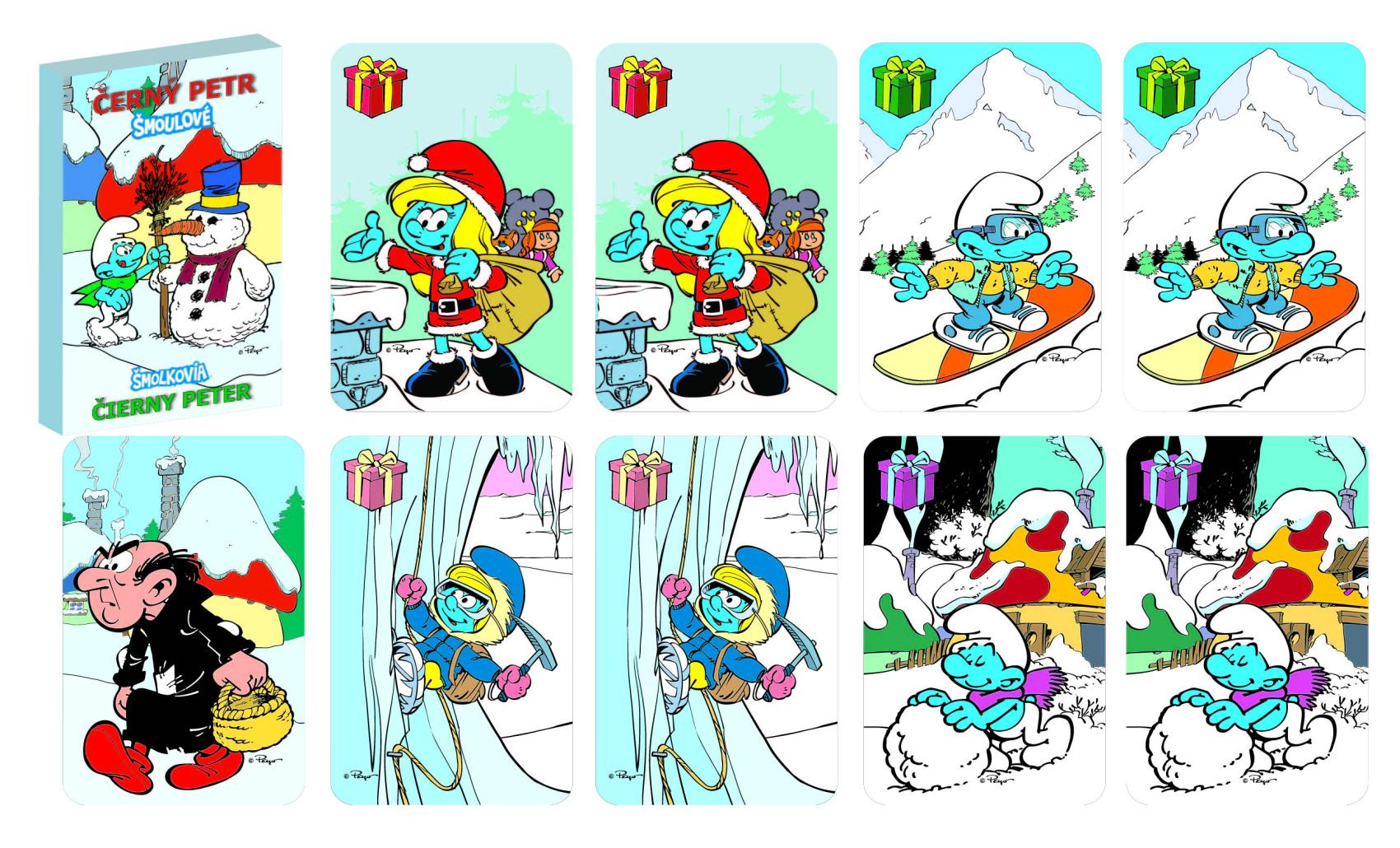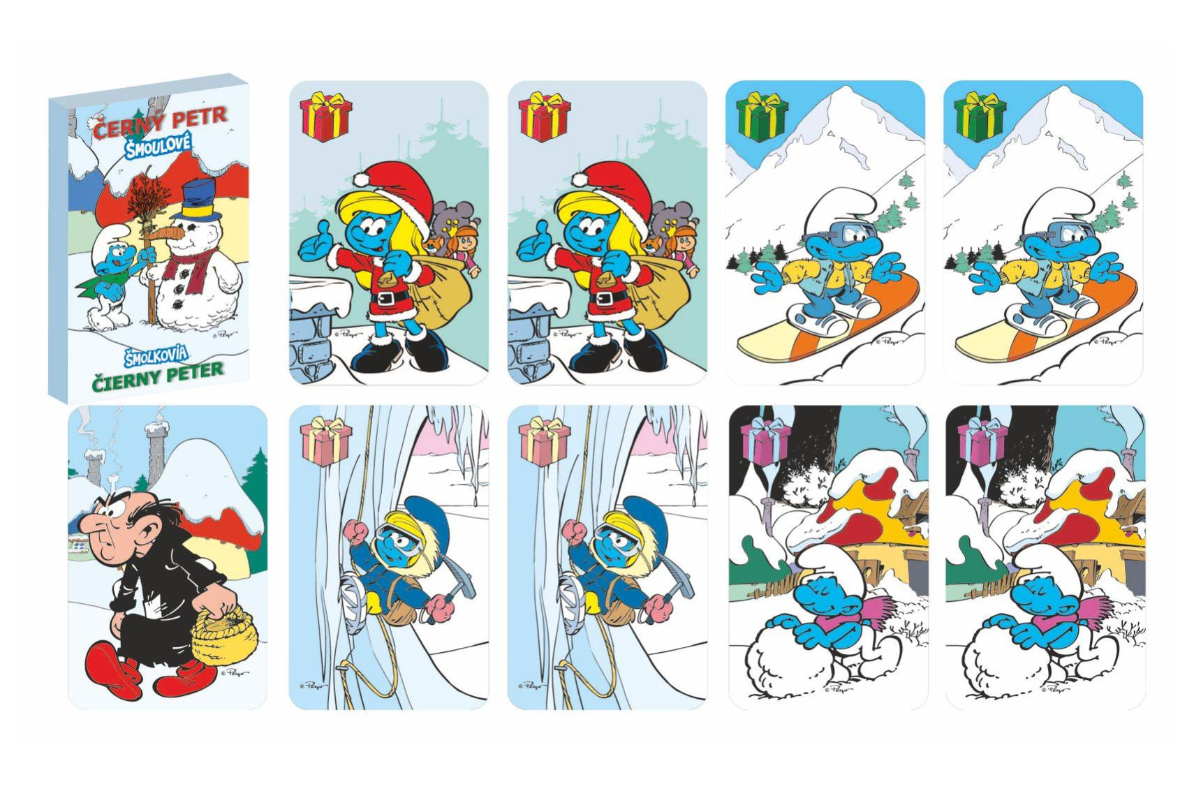 Popis Černý Petr Šmoulové 2 zimní společenská hra v papírové krabičce 6x9cm