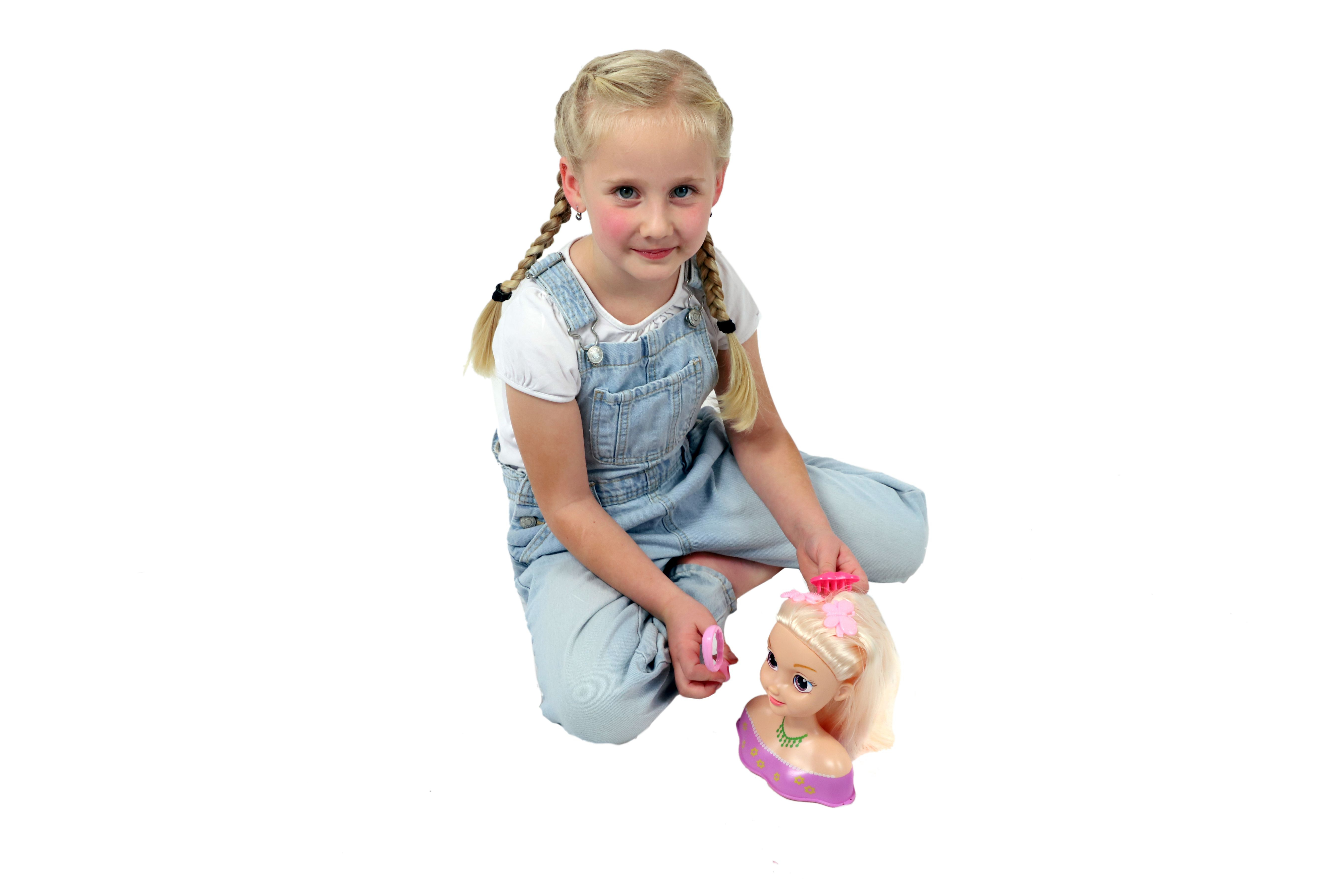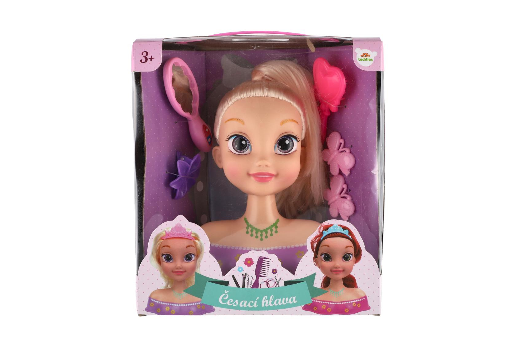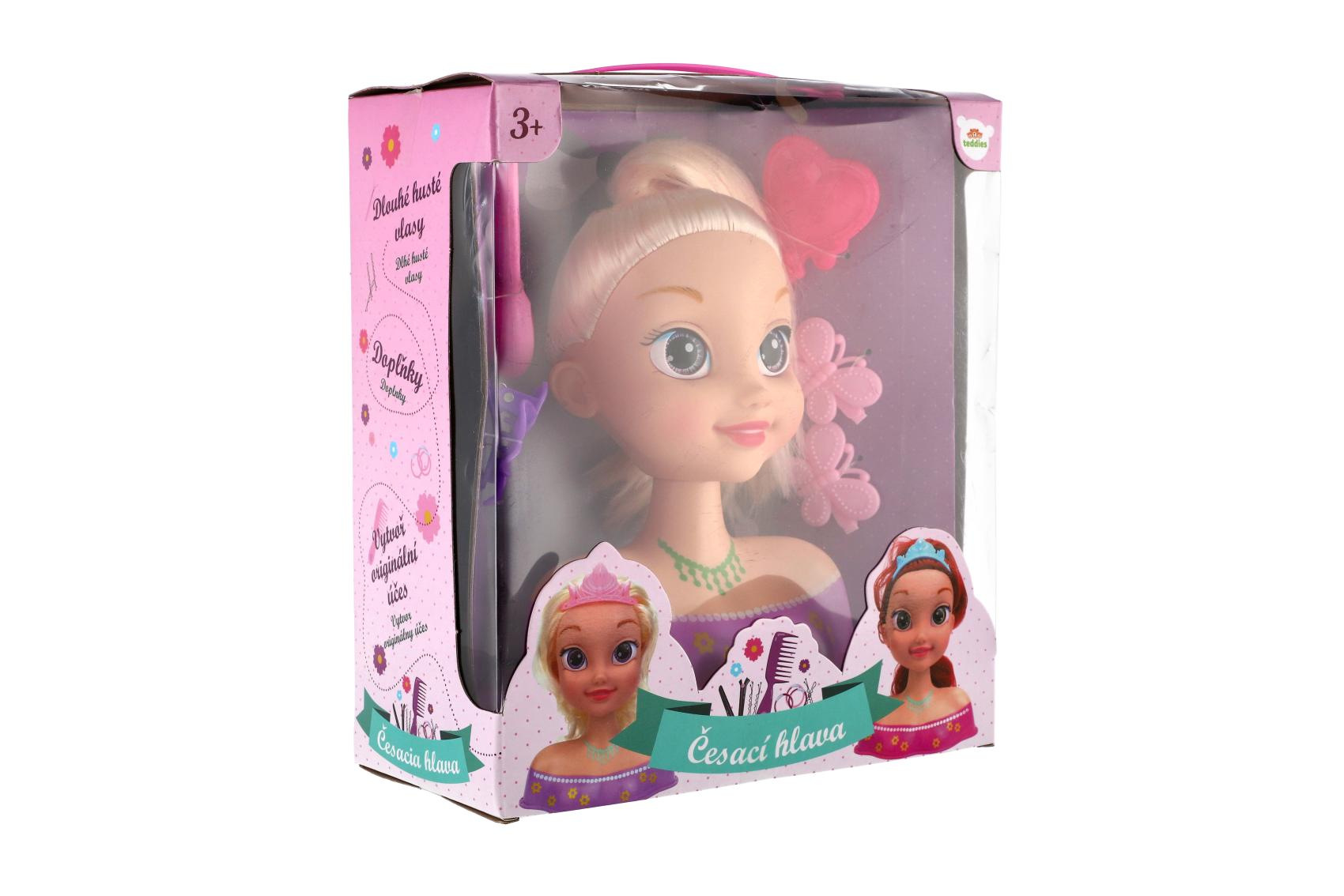 Popis Česací hlava velká blond s doplňky v krabici 22x24x11cm