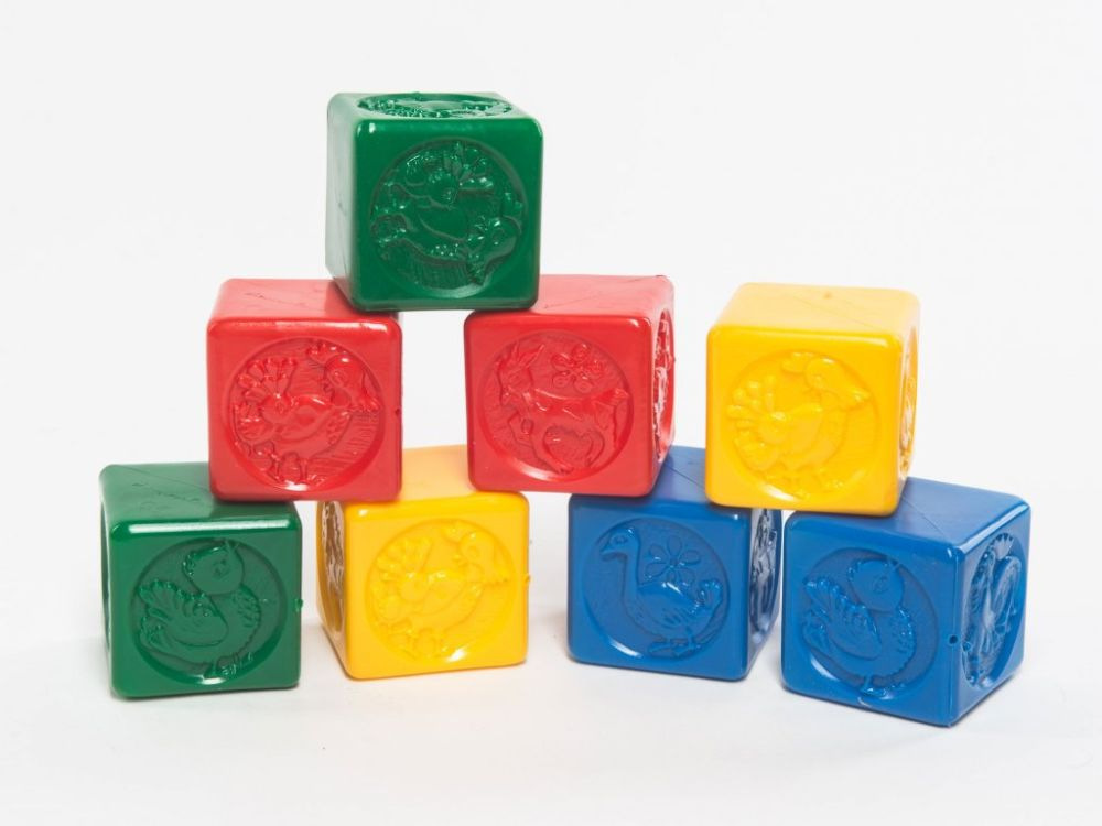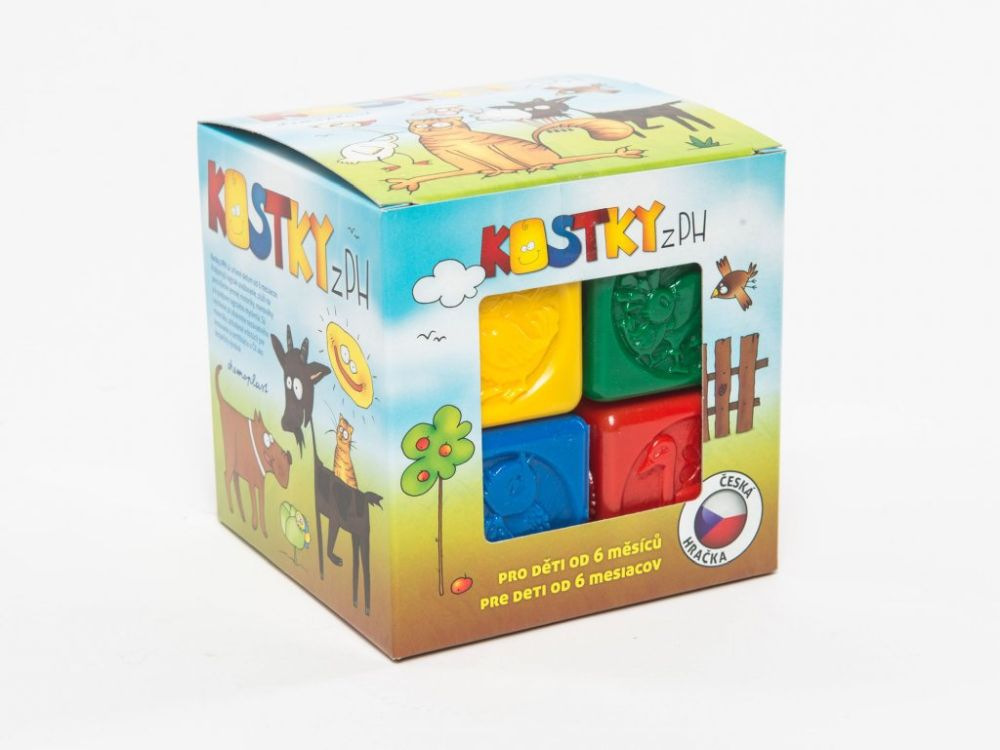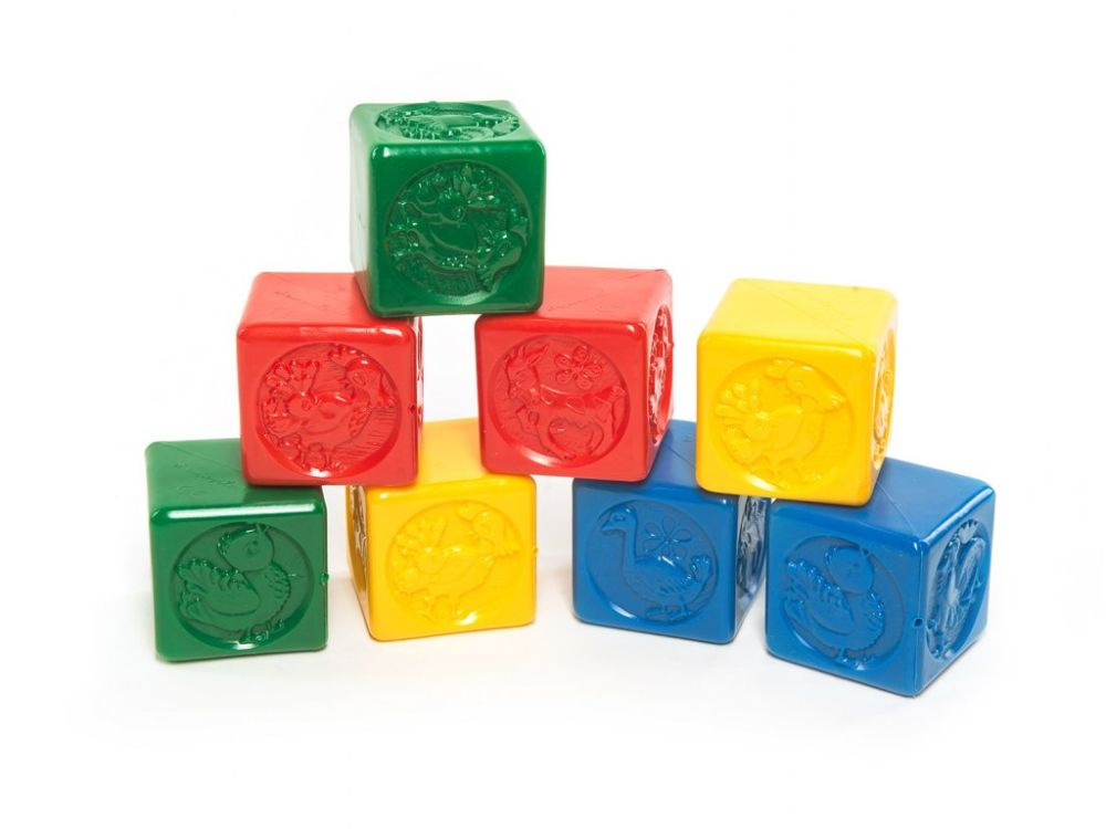 Sada osmi kusů barevných kostek pro nejmenší děti z plastu.\nČtyři různé druhy plastových kostek pro děti, které rozvijí motoriku dětí. Hrací plastové kostky \npotěší všechny malé kluky i holčičky. Čtyři barvy s motivy zvířátek a spousta zábavy pro každý den. \nTato didaktická hračka skvělým způsobem rozvine motoriku a fantazii vašich děti. Zábava pro každý den, to jsou plastové kostky pro děti.