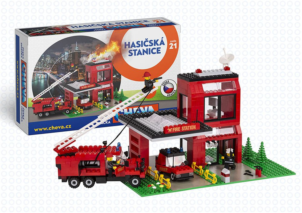 Tato sada stavebnice Cheva 21 Hasičská stanice patří k základním verzím stavebnice Cheva. Stavebnice Cheva obsahuje jednotlivé kostky a příslušenství, z nichž lze sestavit Hasičskou stanici, která bude chránit Cheváky před nebezpečím požárů. Stavebnice Cheva je dárek, která potěší každé dítě. Klasická česká stavebnice Cheva je variabilní a polytechnická stavebnice, která povzbuzuje dětskou zručnost, představivost a kreativitu. Stavebnice Cheva se skládají z různých stavebnic, které se dají libovolně kombinovat. Mohou tak vznikat skvělá městečka, která obsahují policii, hasiče, nádraží, benzínovou stanici, taxi službu apod. Tato stavebnice je vhodná pro děti od 6 let. Počet dílů: 411 ks