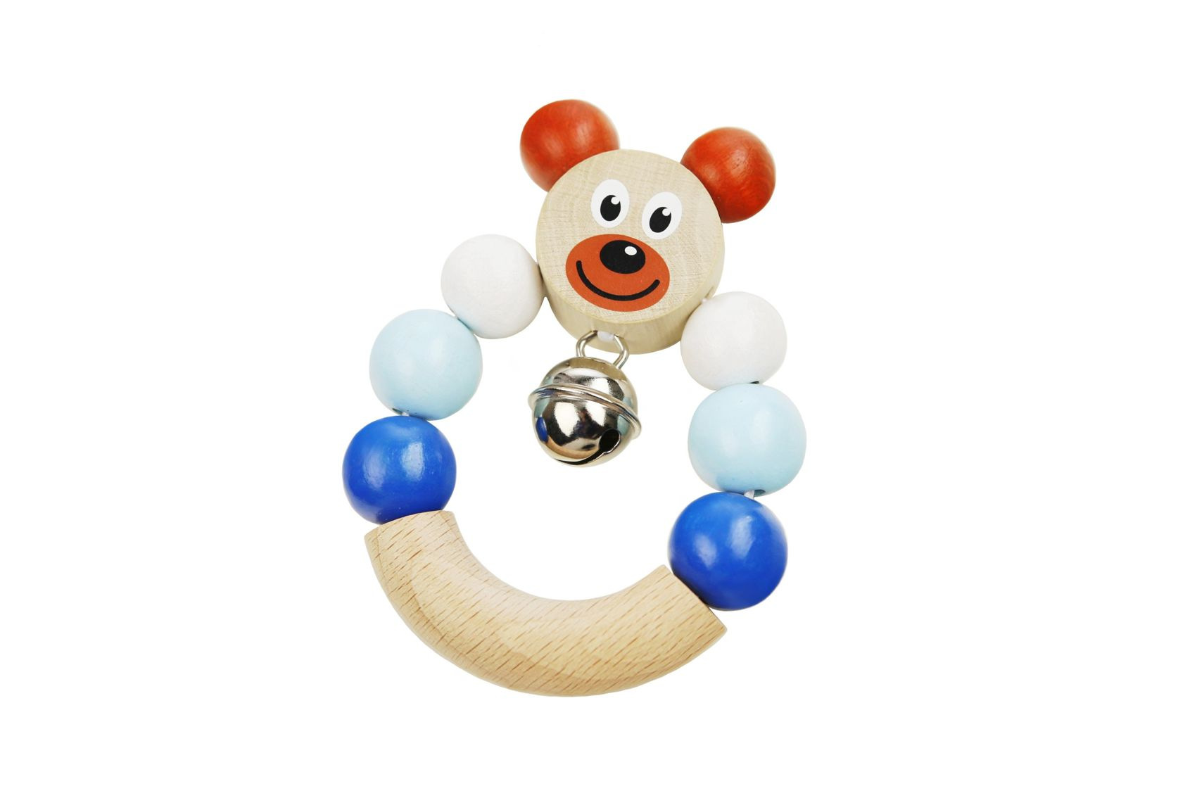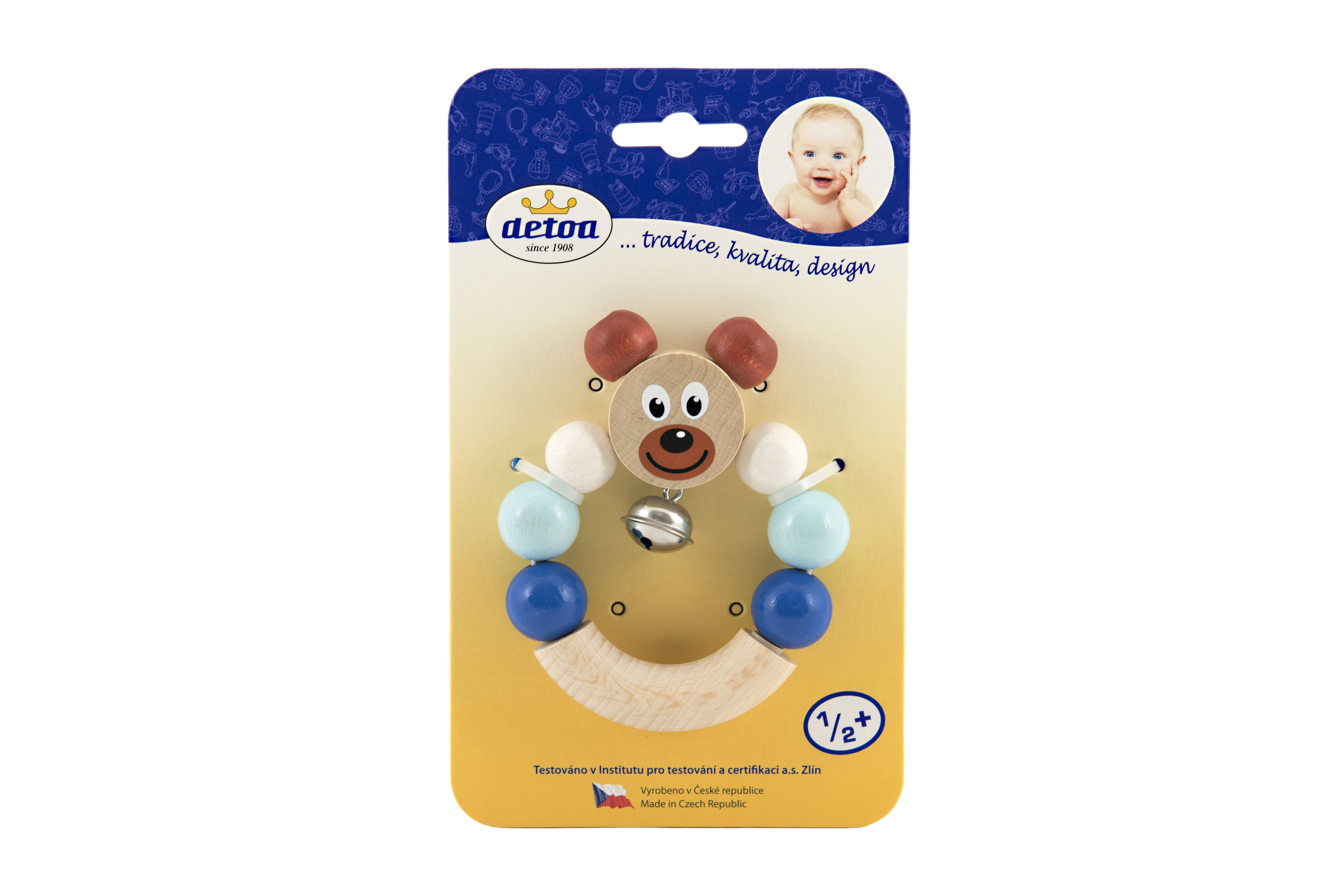 Detoa Chrastítko/Hrkadlo medvěd modrý dřevo 7x9cm na kartě 6m+