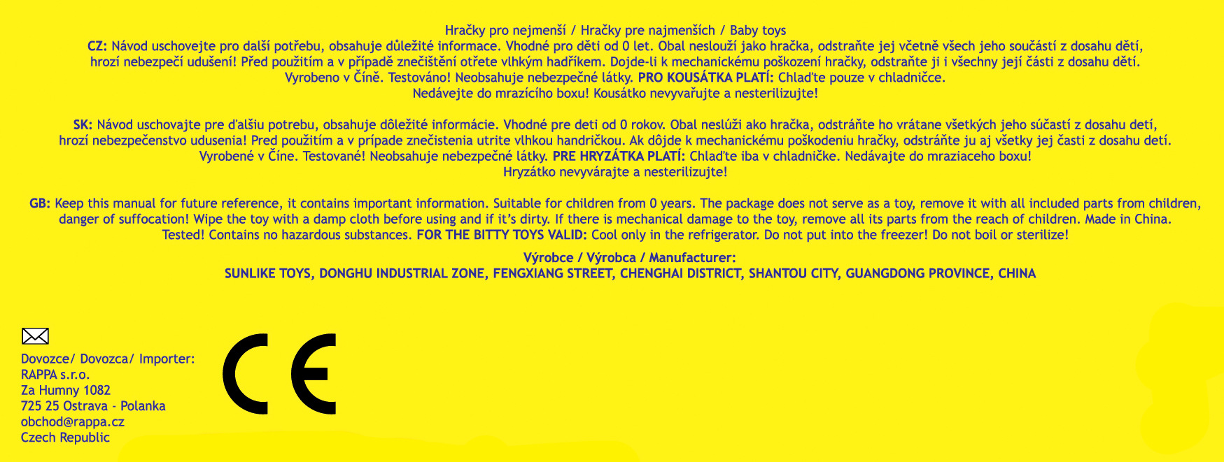 Chrastítka jsou tvarově koncipována tak, aby byla uchopitelná dětskou rukou-při hře si dítě cvičí uc