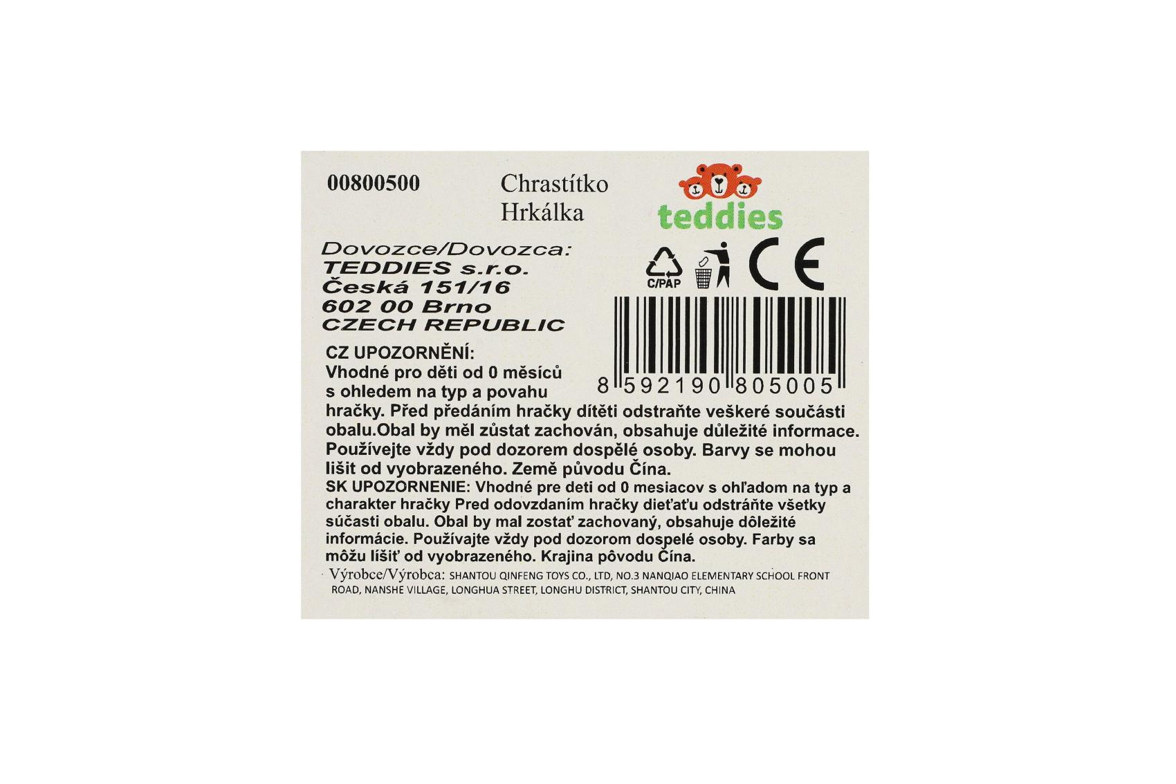 Popis Chrastítko/Kousátko plast/silikon 10cm na kartě 0m+