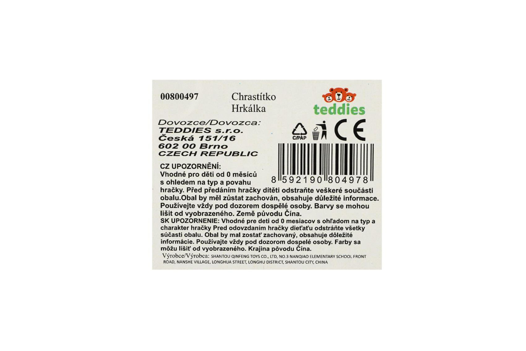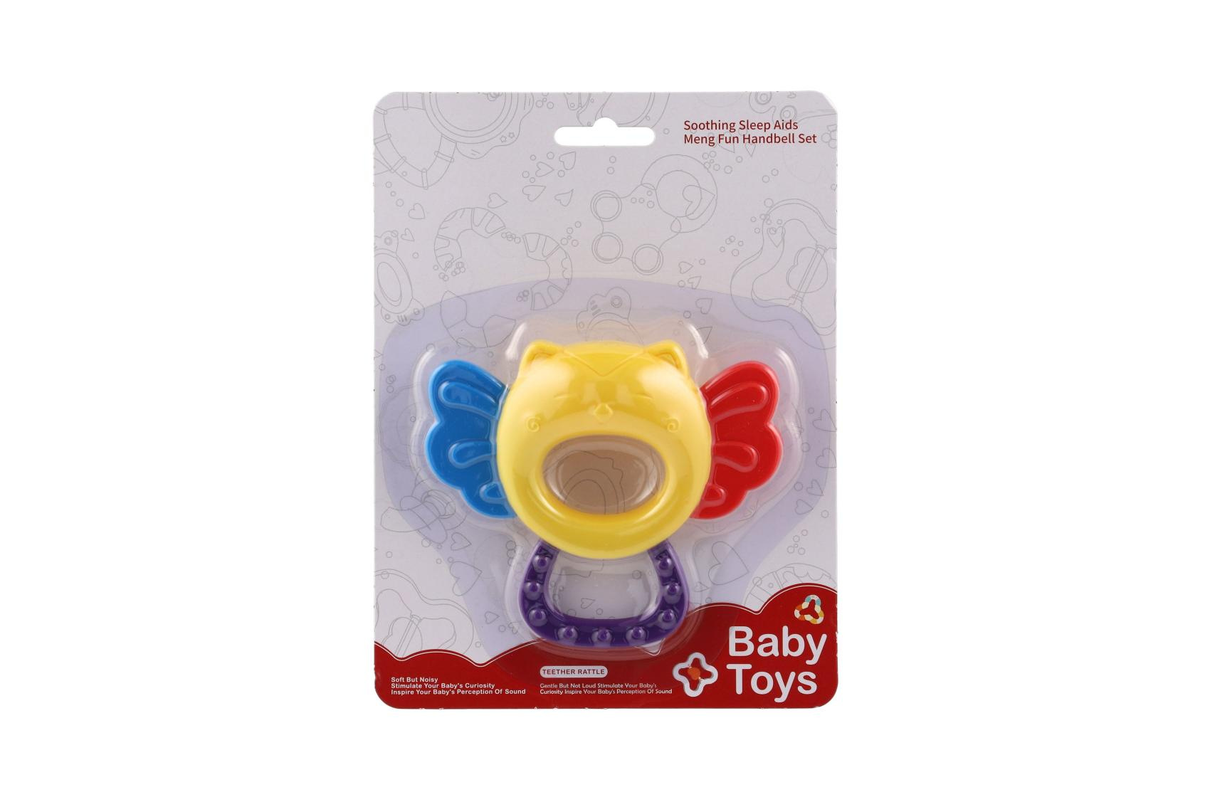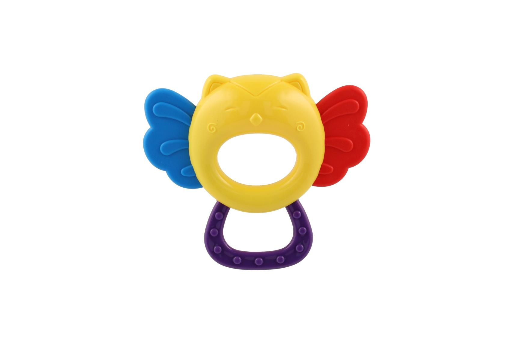 Chrastítko/kousátko sova plast 11x10cm na kartě 0m+