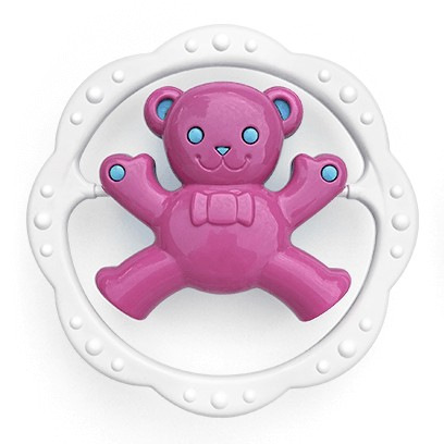 Pestrobarevné chrastítko kruh medvěd nebo zajíc. Rozvíjí motorické a zrakové dovednosti dítěte. Mix barev, vyberte si barevnou kombinaci pro holky a nebo pro kluky. Barvy se mohou lišit od vyobrazení, dodáváme dle skladové dostupnosti.