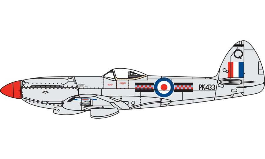 Informace o originálu a modelu: Letoun F Mk.22, považovaný mnohými za ten nejdokonalejší Spitfire, se svým raným předchůdcům podobal jen velmi vzdáleně. Byl vybavený výkonnějším motorem Griffon, měl větší ocasní plochy a zkrácenou zadní část trupu. Díky tomu se jednalo o nejvýkonnější a také nejschopnější Spitfire, který se dočkal služby. F Mk.22, který sloužil jen v malém počtu a do druhé světové války se dostal příliš pozdě, představoval předposlední pozemní variantu klasického Spitfiru.