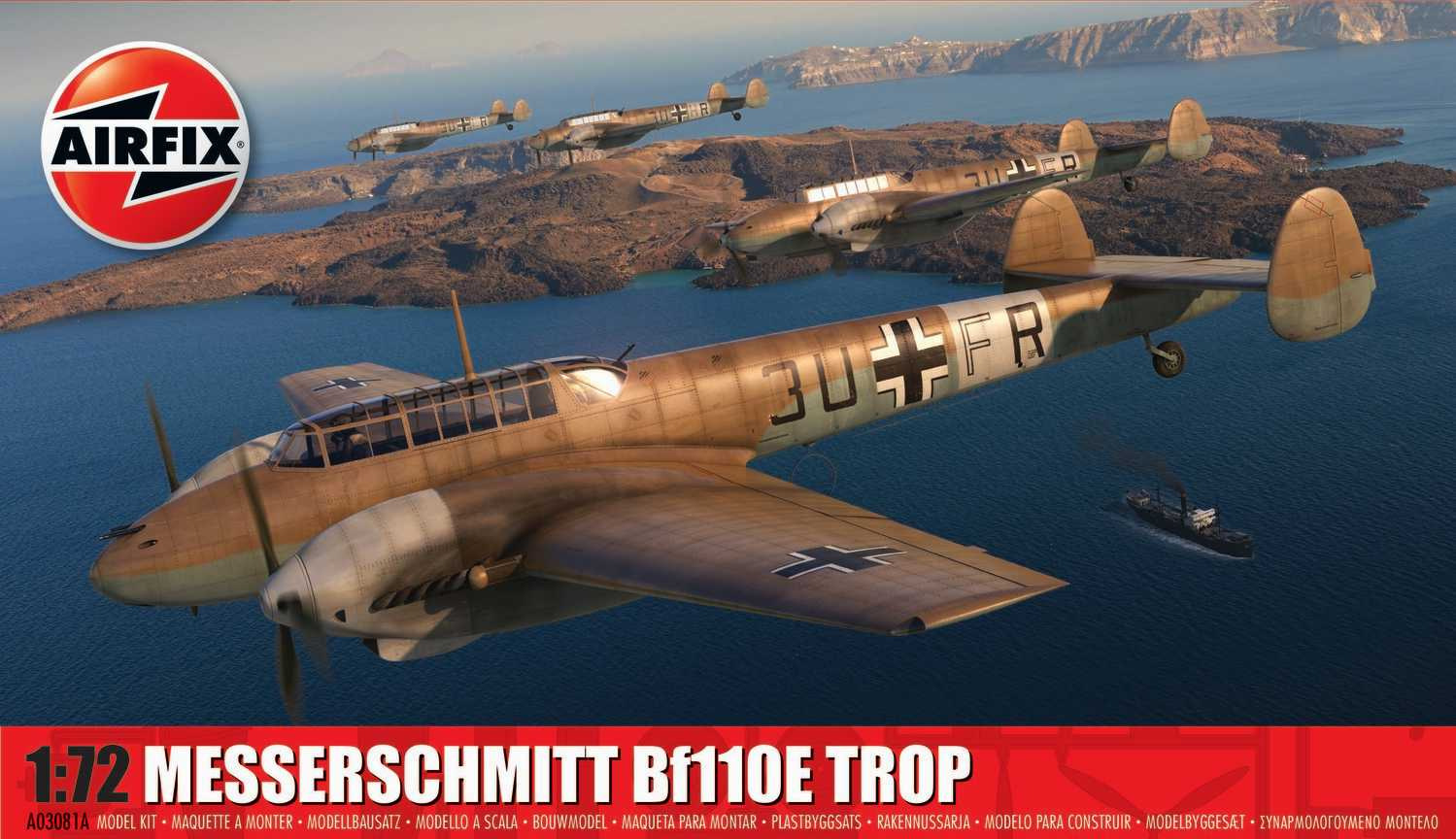 Informace o originálu a modelu: Messerschmitt Bf 110, jeden z nejvýraznějších letounů druhé světové války, byl dvoumotorový těžký stíhací letoun, který měl být rychlejší a lépe vyzbrojený než jakýkoli jiný stíhací letoun té doby, a během prvních měsíců druhé světové války se rozhodně představil jako ničivě účinný stroj. Přestože během bitvy o Británii tváří v tvář pilotům RAF trpěl, i nadále prokazoval své kvality jako dálkový stíhací bombardér a letoun pro pozemní podporu nad rozsáhlými oblastmi Ruska a ve Středomoří a severní Africe, kde sloužil po celý zbytek druhé světové války.