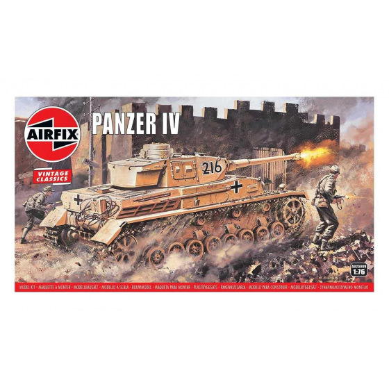 Informace o modelu: Původní podoba modelu z roku 1971, ilustrace na obalu od Roye Crosse, 1971. Užijte si nostalgické chvíle s modelovou řadou Airfix Vintage Classics. Panzer IV byl nejvíce vyráběným a nasazovaným německým tankem druhé světové války. Byl odolný a spolehlivý a pohyboval se na všech frontách, kde bojovaly německé jednotky. Připsal si ještě jedno unikum – jednalo se o jediný německý tank, který se nepřetržitě vyráběl po celou válku a kterého tak mezi lety 1936 a 1945 vzniklo přes 8800 kusů.