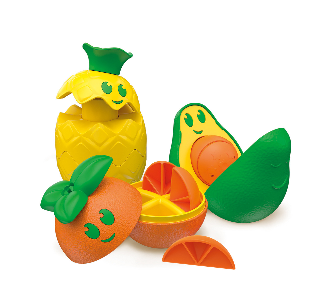 Tři barevné kousky ovoce pro výživu mysli a pilování logického myšlení u malých dětí! Rafinovaný design pro hru prémiové kvality vyrobenou z recyklovaného plastu. Ovoce, které je třeba znovu poskládat, zdokonaluje logické myšlení prostřednictvím různých her, které se postupně stávají obtížnějšími, pro pomoc malým dětem při růstu využíváním jejich skrytých schopností. Avokádo se otevírá a skrývá kuličku, kterou je třeba vyjmout a vložit zpět. Ananas se skládá ze stohovatelných prvků, pomeranč se otevírá a skrývá 4 plátky, které je možné vyjmout a vrátit dovnitř. Každé ovoce díky své struktuře stimuluje různá manuální cvičení a různé smyslové zážitky. Rozměr balení: 24 x 19,5 x 11,5 cm Věk: 12m+