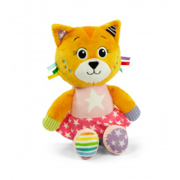 Ultra měkká plyšová kočka vhodná pro malé děti na hraní v atmosféře plné něhy. Plyšová hračka je vyrobena z různých materiálů napomáhajících multismyslové stimulaci a rozvoji hmatového vnímání v prvních fázích života. Plyšová hračka má malé kousátko, připravené speciálně pro kousání nejmenších uživatelů hračky. Lze prát v pračce. Rozměr balení: 16x22,5x8,5 cm. Věk 0m+