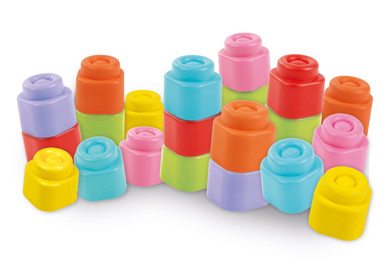 Clementoni Soft Clemmy sada 20 kostek v praktickém uzavíratelném plastovém pytli je vhodná pro děti od 6 měsíců. Měkké, zdravotně nezávadné, různobarevné kostičky lze jednoduše skládat na sebe a dítě si tak rozvíjí jemnou motoriku a představivost. Kostičky vyrobené ze silikonu a měkkého plastu jsou bezpečné, lehce voní a jsou omyvatelné. Rozměry balení: 26 x 18,5 x 12,5 cm. cm. Věk: 6 m+